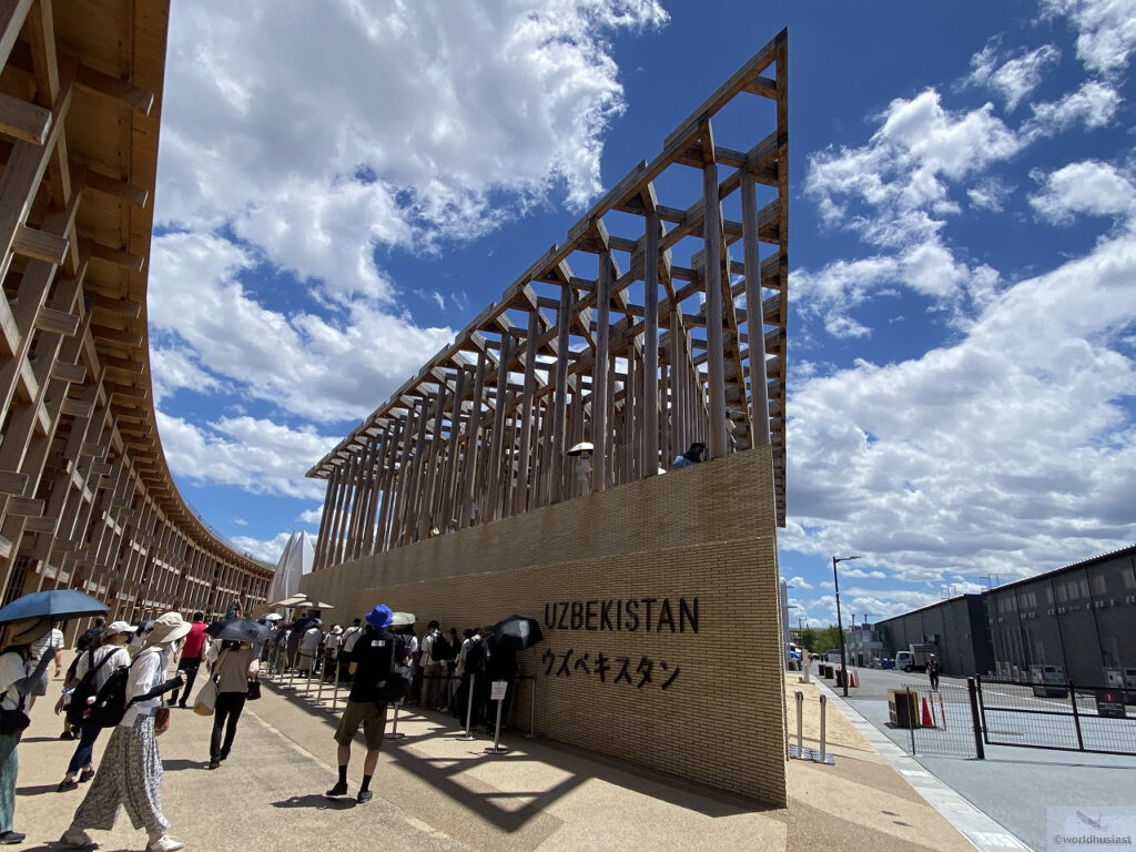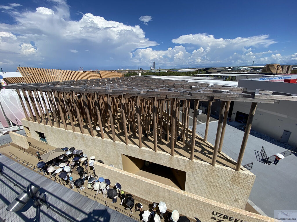 ヒヴァのジュマモスクをイメージしたもので、万博後はウズベキスタンに送られ教育設備として使われる予定だとか。簡単な説明を受けた後、自由解散となりました。