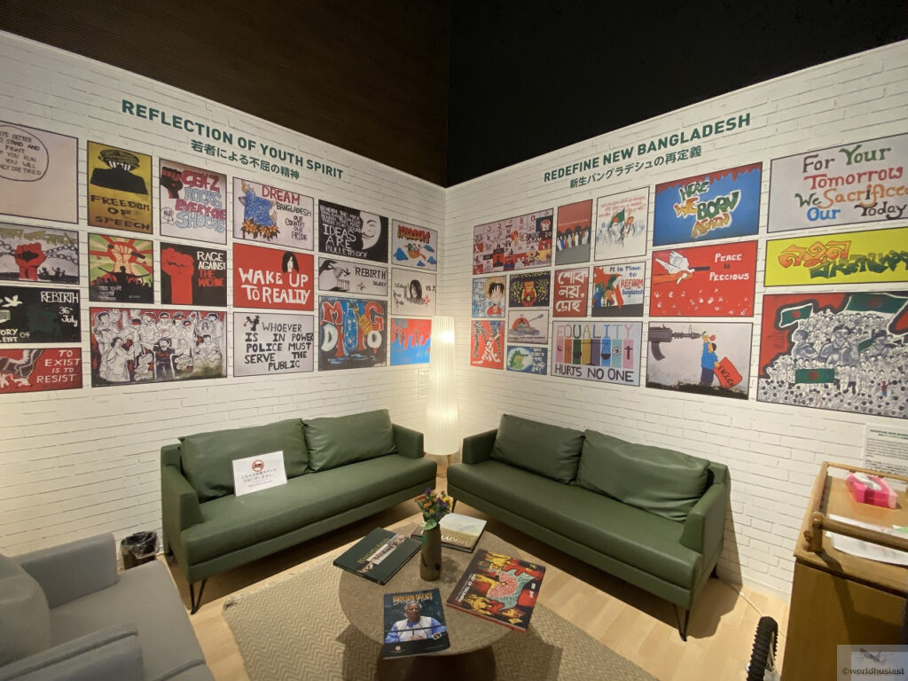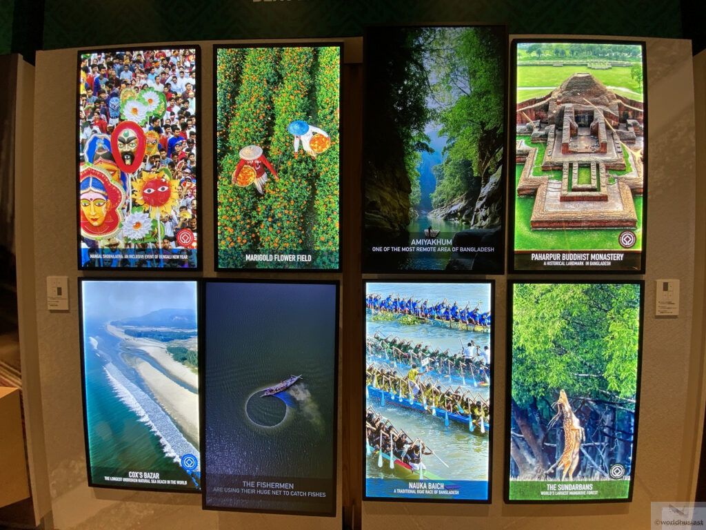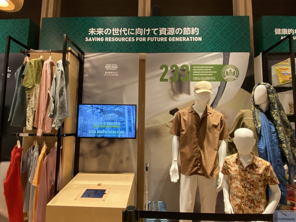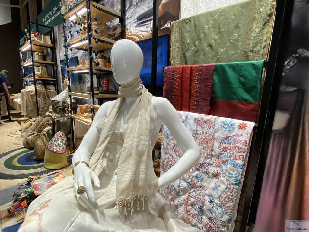 アーチの左側を通って出口に向かいます。ここでは農業のほか、バングラデシュは人件費が超絶安いためさまざまな衣類を縫製していることも触れられていました。ユニク□とかバングラ製のがありますが、あの超格安はバングラの人のおかげでもあり、洋服を選ぶときに思いを馳せてみるのもいいですね。