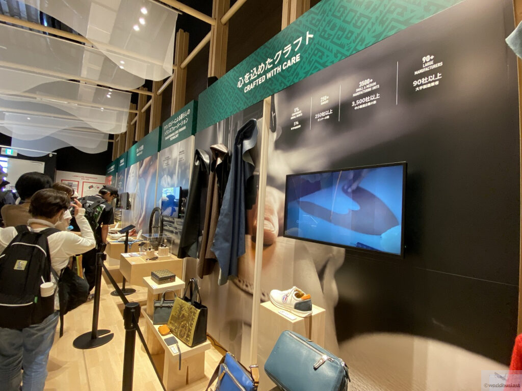 アーチの右側は、モニターで食べ物、技術革新、文化、織物やクラフトが紹介されていました。