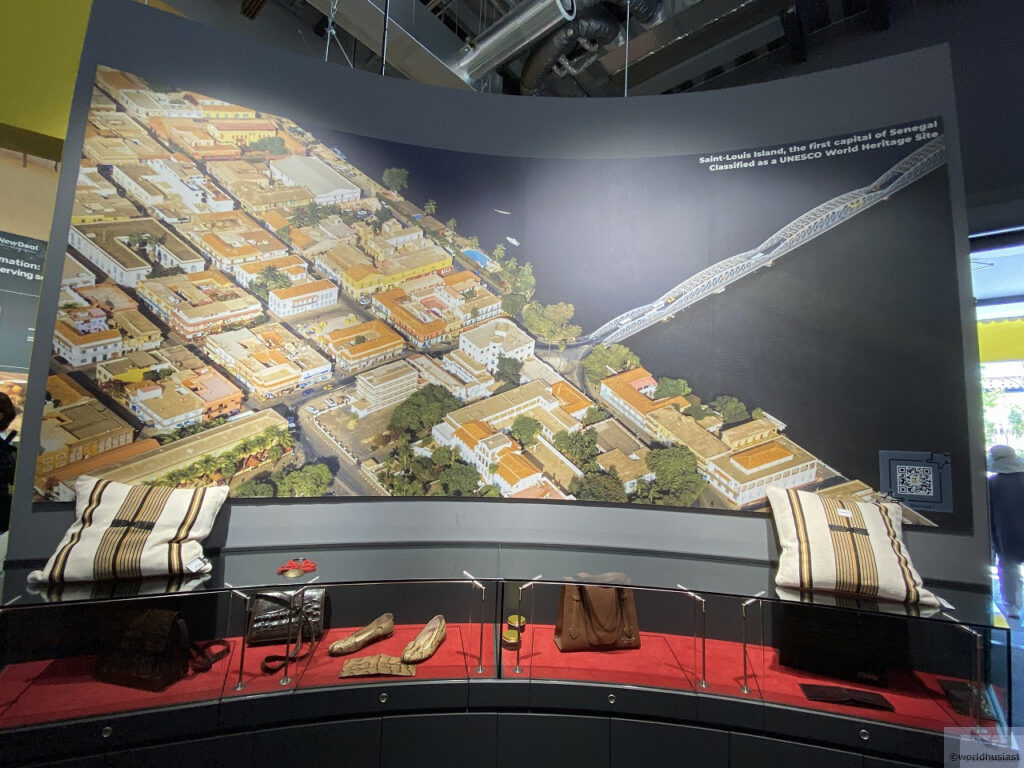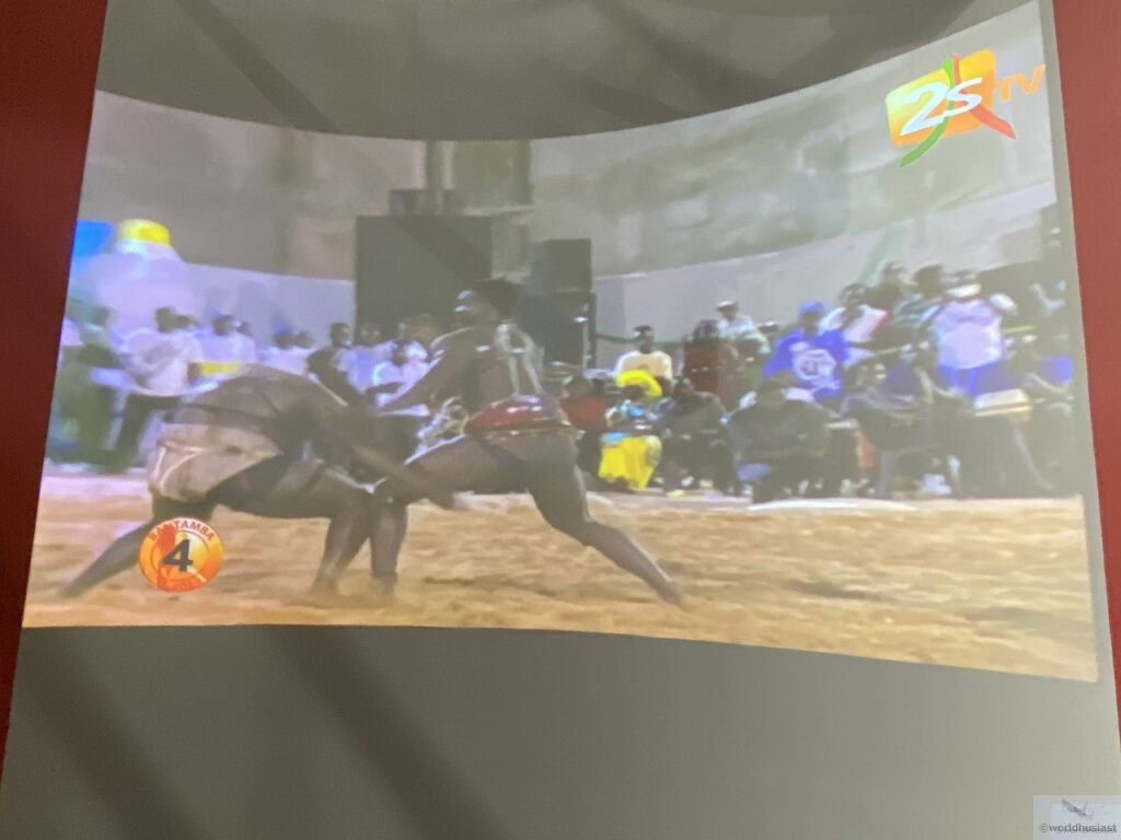 パネルコーナーが終わりUターンすると、スクリーンにセネガル相撲や、世界遺産サン=ルイや北朝鮮によるアフリカ・ルネサンスの像などのセネガル各地の映像、世界遺産ゴレ島(ダカール沖)の映像が流れていました。