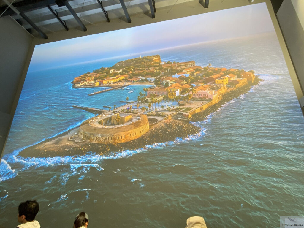 ゴレ島映像は日本語のナレーション付きでした。奴隷貿易についての内容で、二度と繰り返されないようにというメッセージが込められていました。