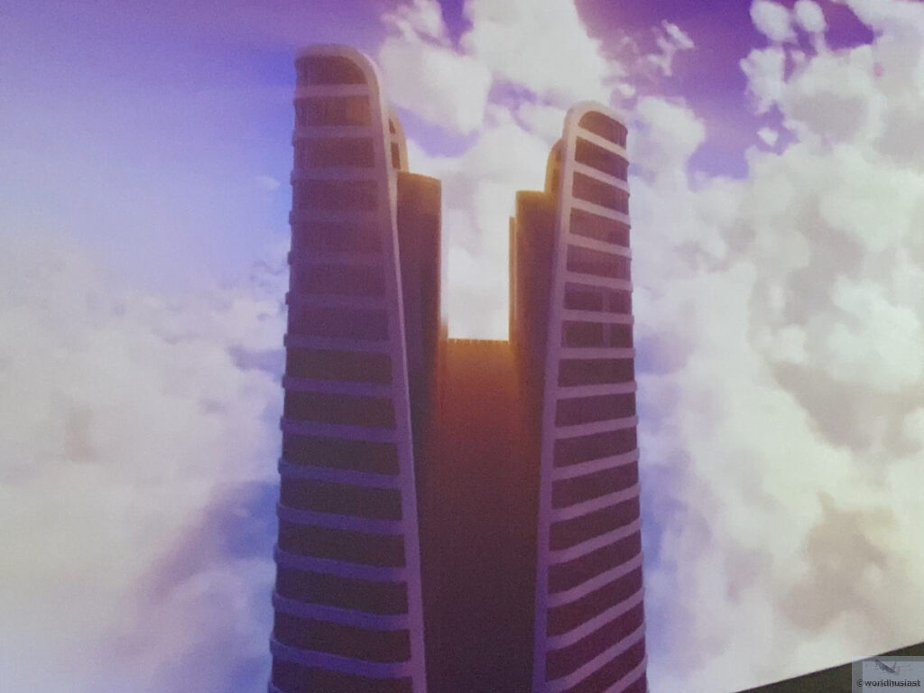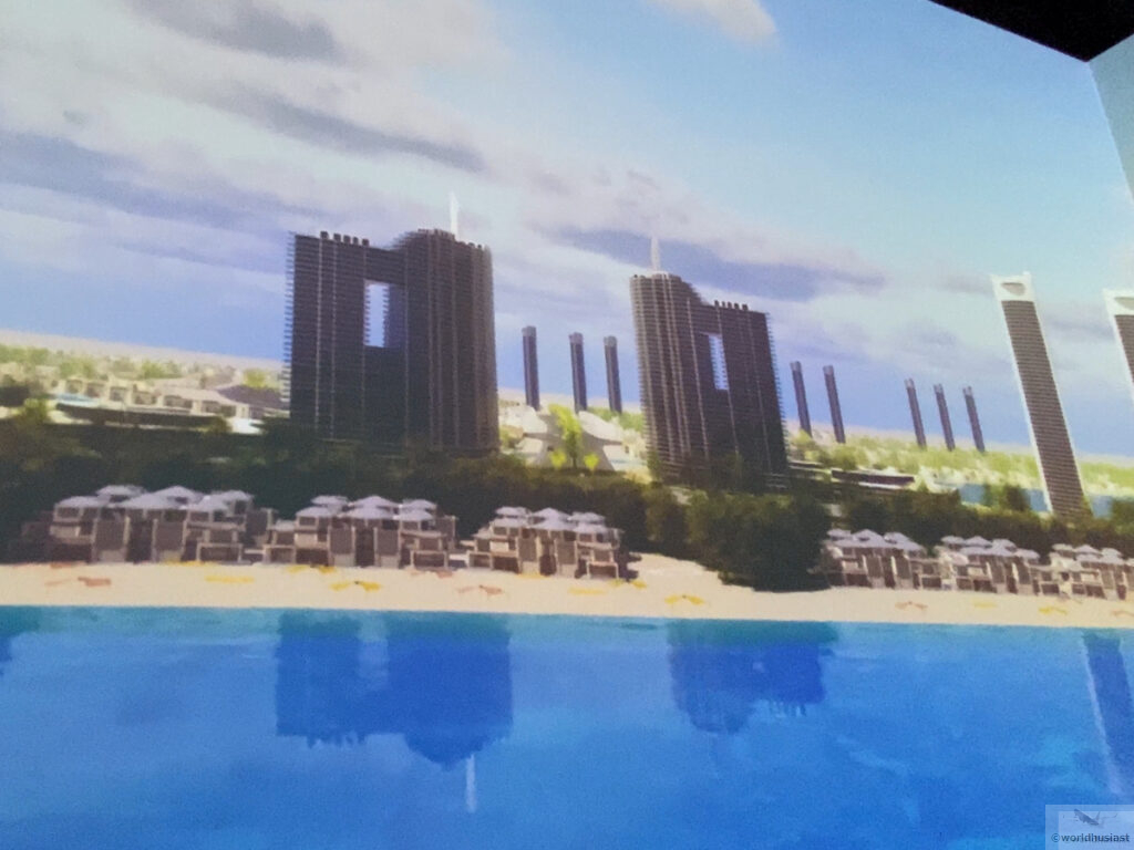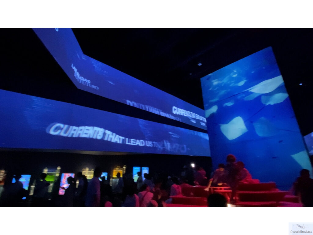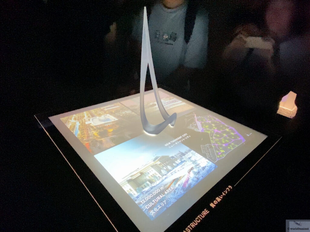次の部屋もまたムービー鑑賞。今度はエジプトの都市部のCG動画です。高層ビルとモノレール、港湾、風力・太陽光発電などが映されていました。今回も特に説明はありません。映像のクオリティは正直・・・どうでしょう。