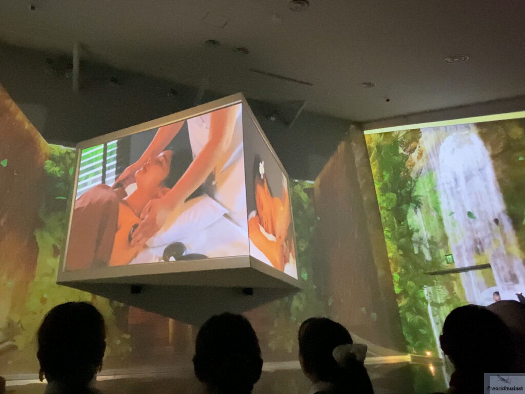 次はシアター。マッサージとムエタイ、食事の映像でした。