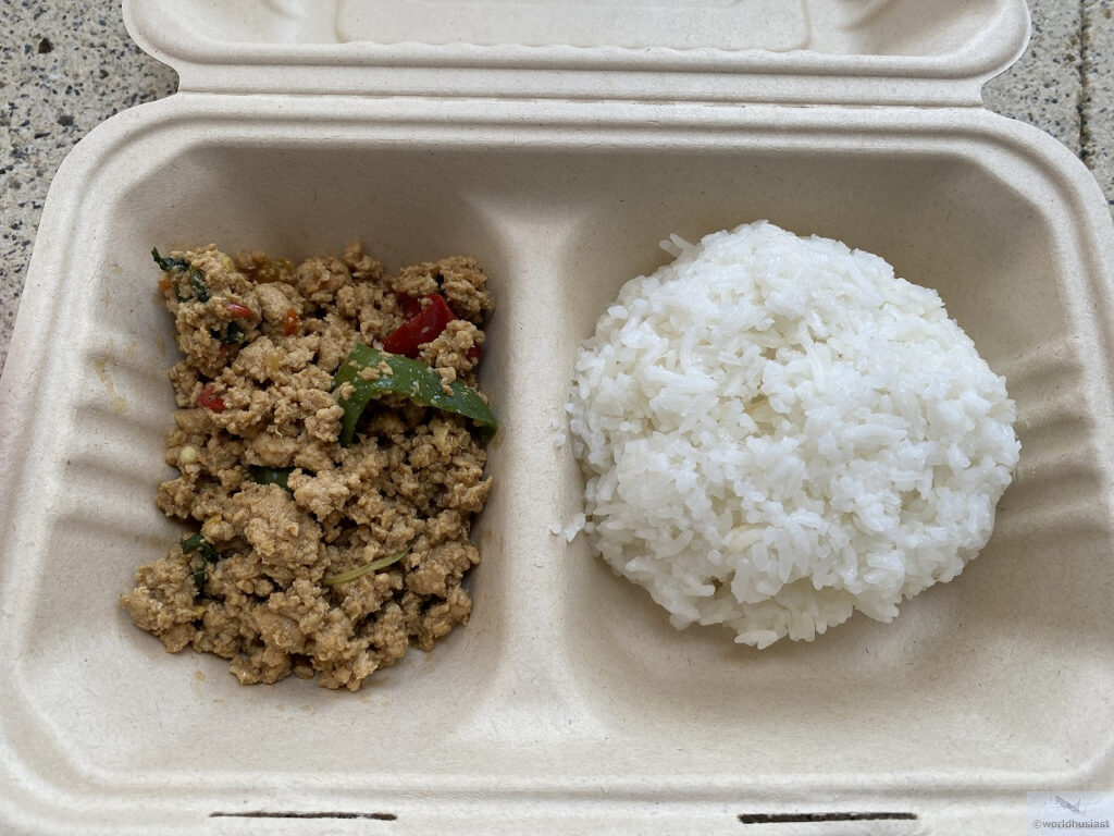 売店でタイ料理が注文できるので、注文してみました。さっき見た調理場で作ったもののようです。