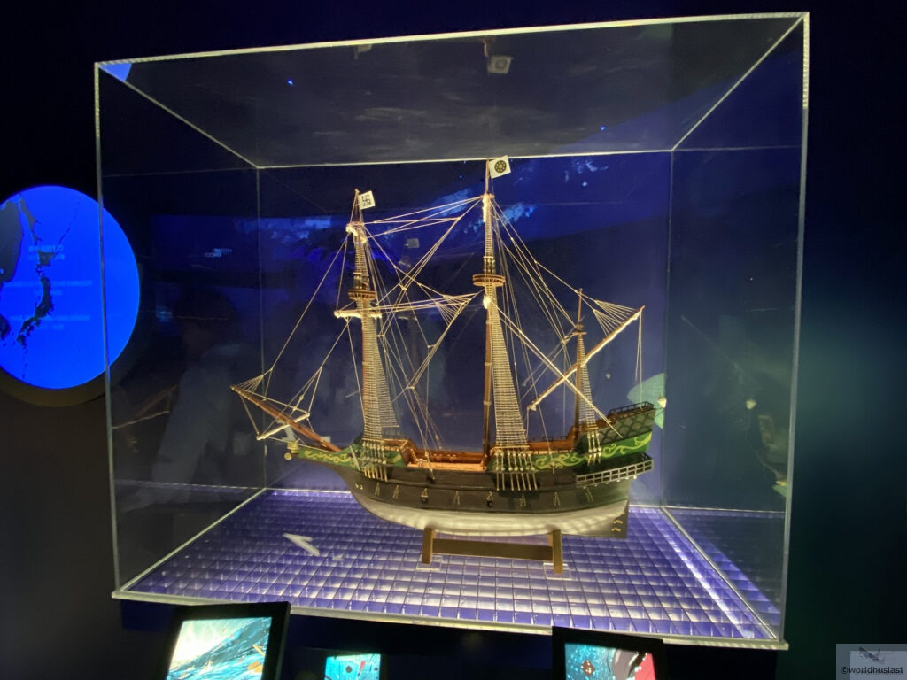 メインは輪島塗の地球儀の展示。直径1mある世界最大級の漆塗地球儀は5年間かけて制作されたもの。2024年1月1日の能登半島地震でも無傷でした。