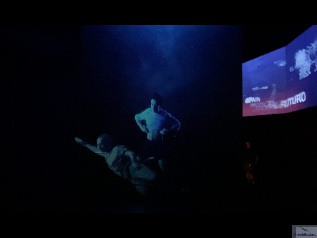 次は中央の円形の部屋の中へ。円形の壁360度に4分程度のプロジェクションマッピングが投影されます。文化遺産や自然の映像でした。