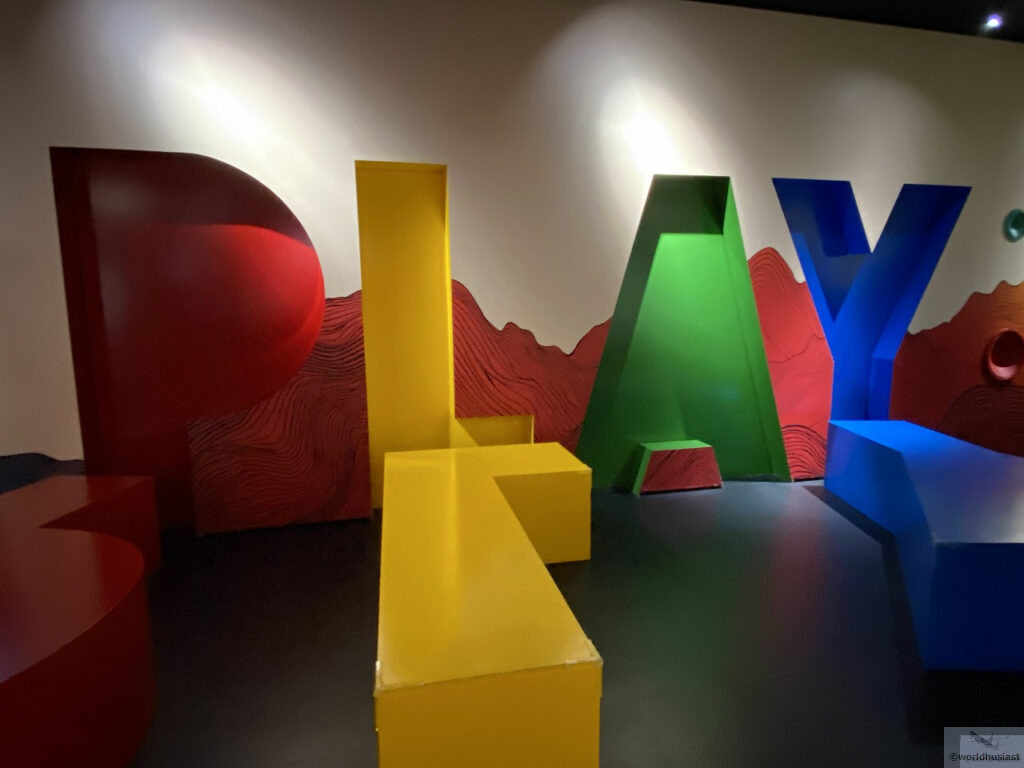 オレンジの照明の部屋の出口にスタンプがありました。公式スタンプ帳を使う方は、照明のせいで色が非常に見づらいので、入館前に何ページに押すか決めておいた方がいいです。