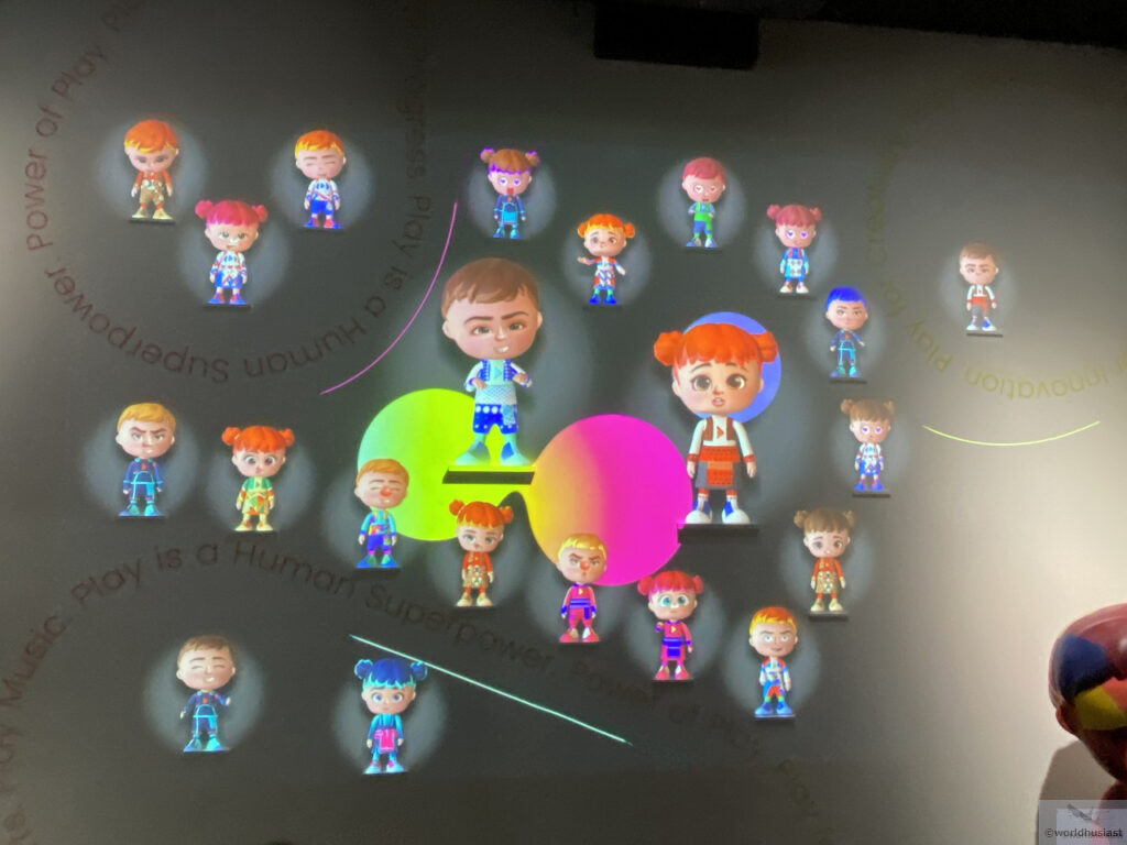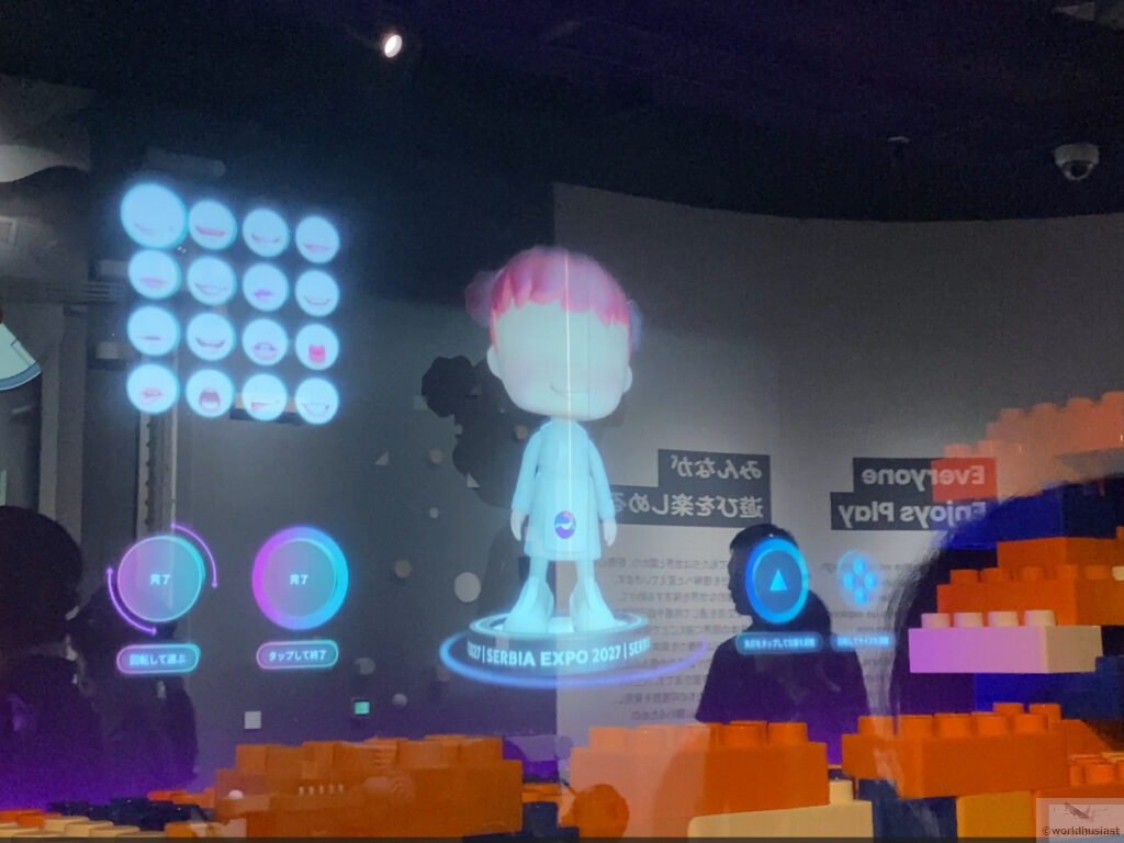 最後にパーツを選んでマスコットを作るコーナーがありました。作成すると出口近くの壁に投影されるようでした。