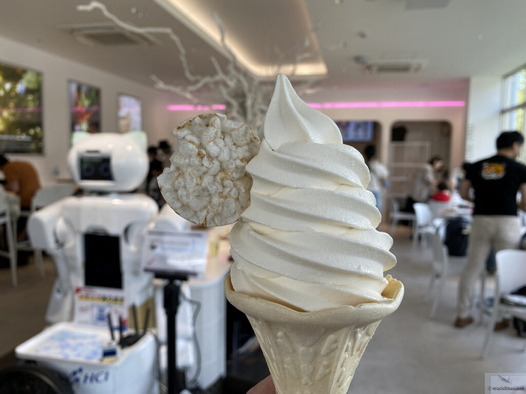 通るたびにミャクミャク焼きに長い行列ができていましたが、10時台はガラガラだったので購入。アイスはすぐ溶けちゃうので要注意!味は見たまんま。1,020円。