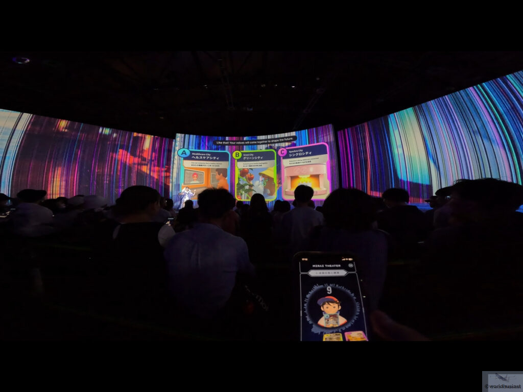 プレショーでは、未来は自分たちの選択でつくられるという内容の1分程度の簡易的なムービーです。ここで初めて参加者はミライ・クリエーターと呼ばれます。