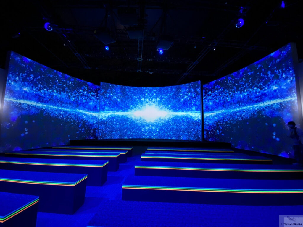 正直、トルクメニスタン館の曲面スクリーンの方が見やすいです。。
