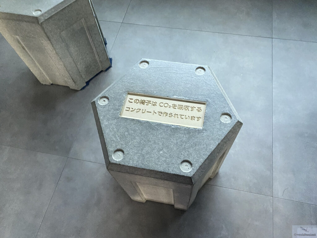 メインは鹿島建設の重すぎるスタンプ。二酸化炭素を吸い込む特殊なコンクリートの展示です。