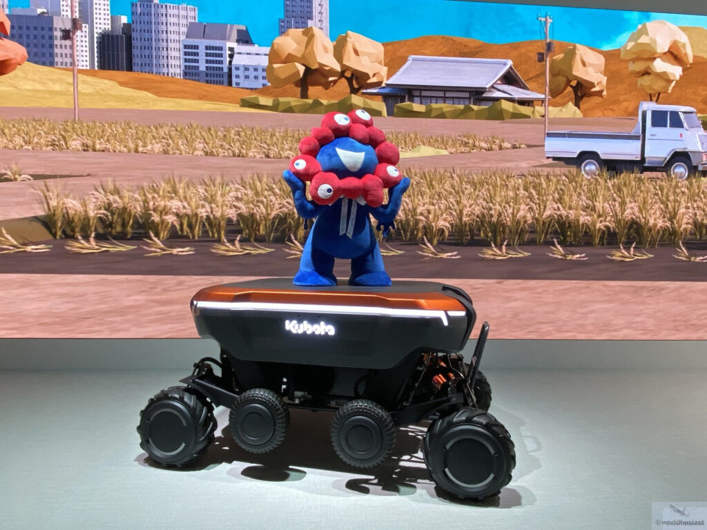Society1.0~4.0までの食事を弁当箱で表現したもの、農作業の完全無人化・グリーン化のための汎用プラットフォームロボット、Society5.0における農業経営者視点のシミュレーションゲーム「PLANET KEEPERS」が並んでいました。