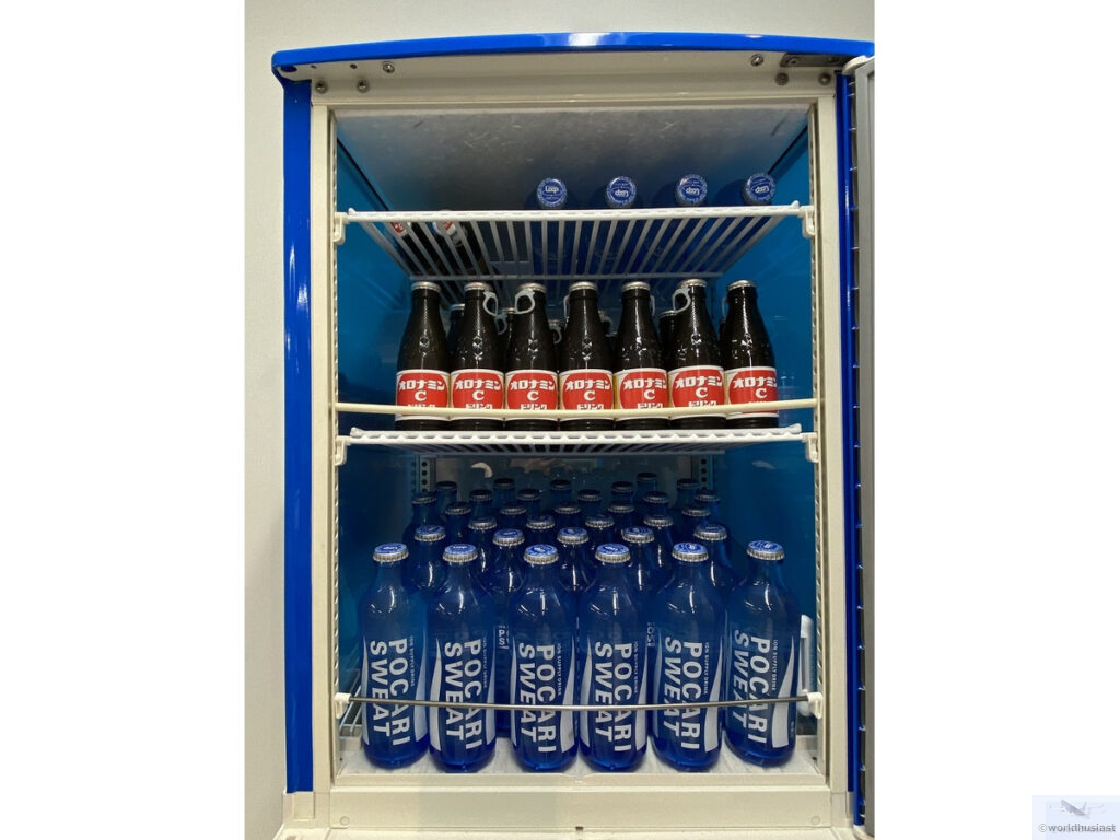 着替えてショップに戻ると、ポカリスエットとオロナミンC(大塚製薬)が無料でいただけます。