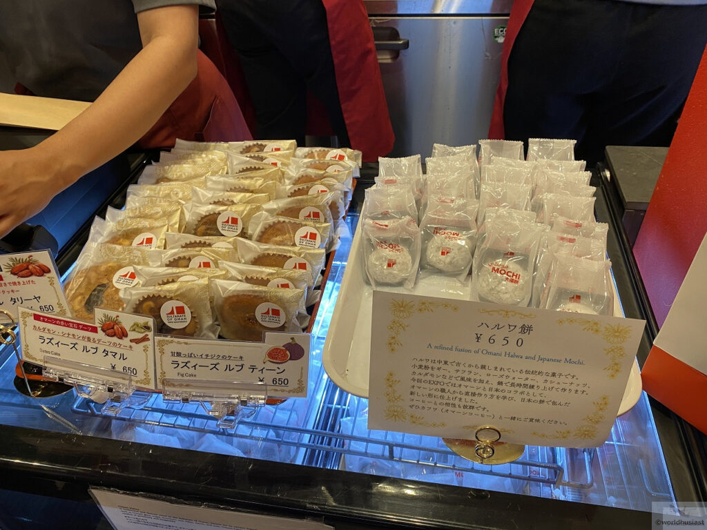 前回のドバイ万博ではさすがに通常のハルワで、しかも量が多くAED 30でしたが、今回はふた口サイズで\650。中身はちゃんとモタっとしたハルワでした。ただ日本人向けに甘さもスパイスも本場よりは少な目でしょうか。