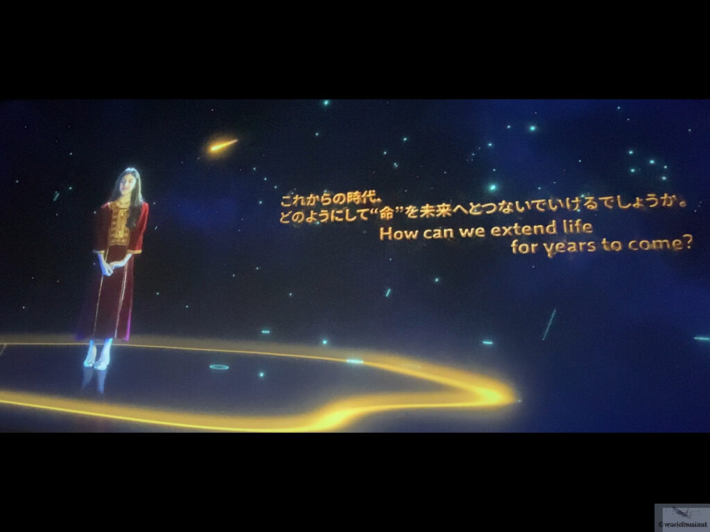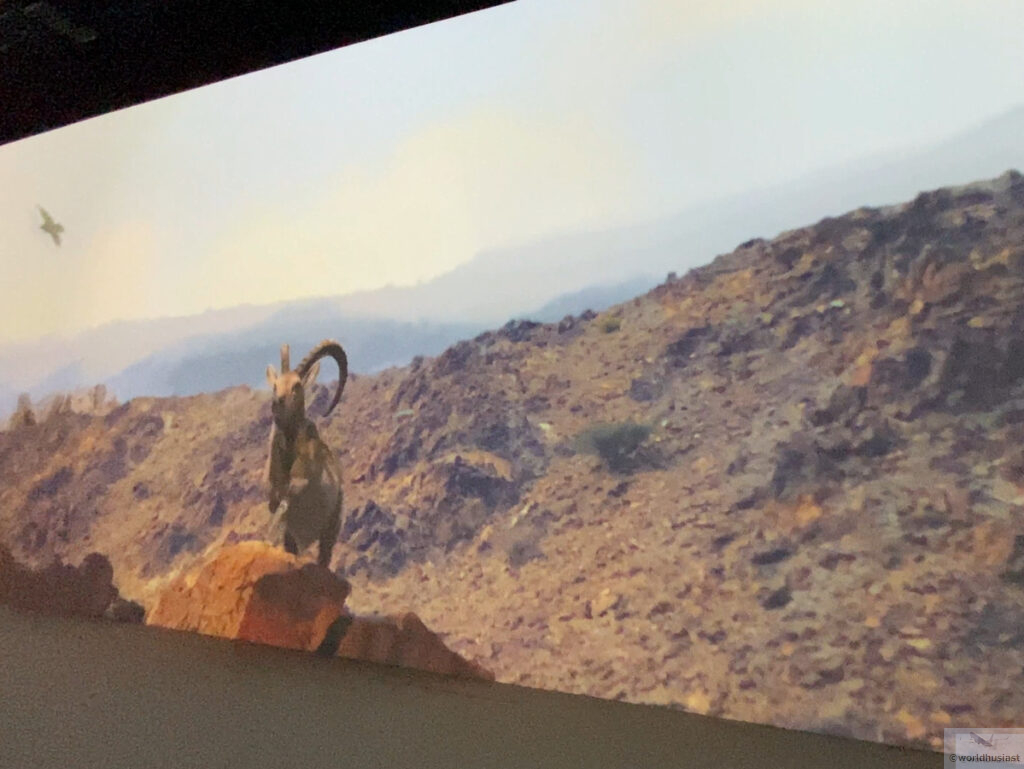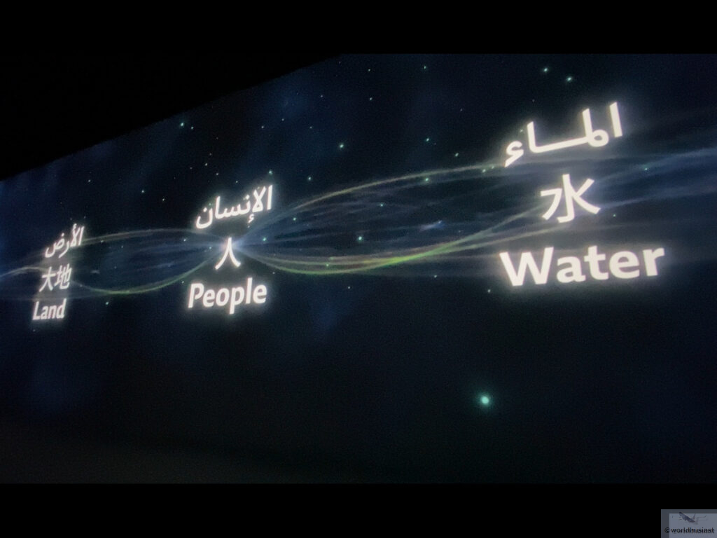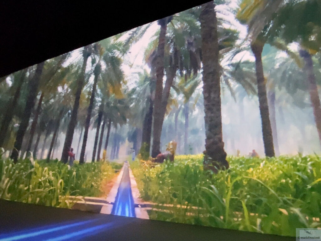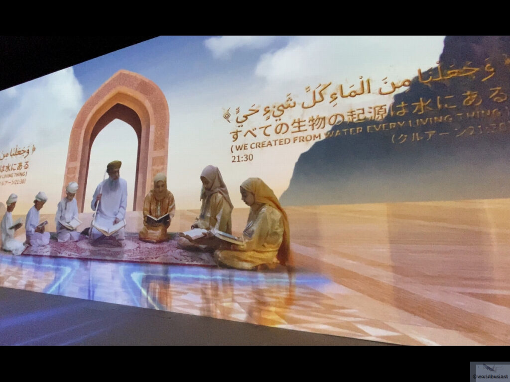 隣の部屋に移り約5分のメインショー。「オマーンの水と大地、そして人々が繋がり、文明を築く物語を少女ルアとともにお楽しみください」とのこと。こちらはアラビア語音声で、日本語英語字幕。