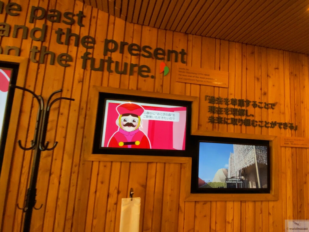 入館を待っている間、モニターにクリス・ペプラー氏、村治佳織氏、能楽師大倉正之助氏による日本とハンガリーのつながりのコメント動画が流れていました。Family nameを先にいう点では日本と同じく家系を重視しているのでは、あとは温泉・・・とか言っていました。私もブダペストでセーチェニ温泉入りましたが、同じような観光をした方も多いと思います。