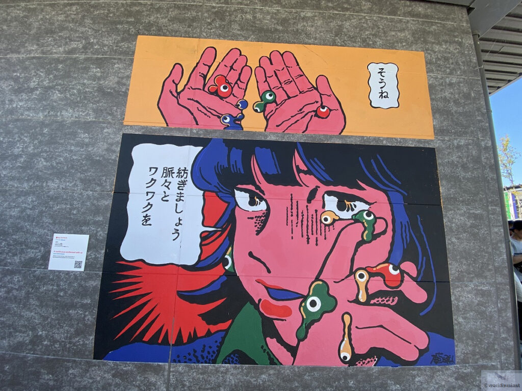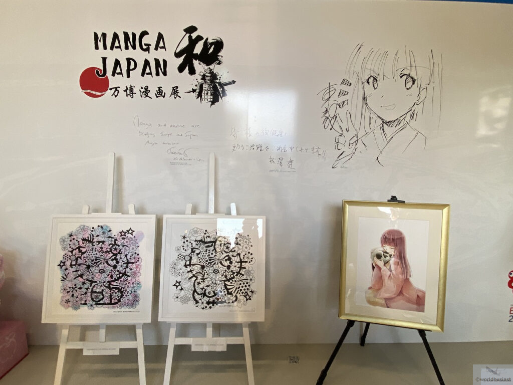 高河ゆん氏、うえやまとち氏、赤塚不二夫氏など日本の漫画家によるイラストが飾ってありました。