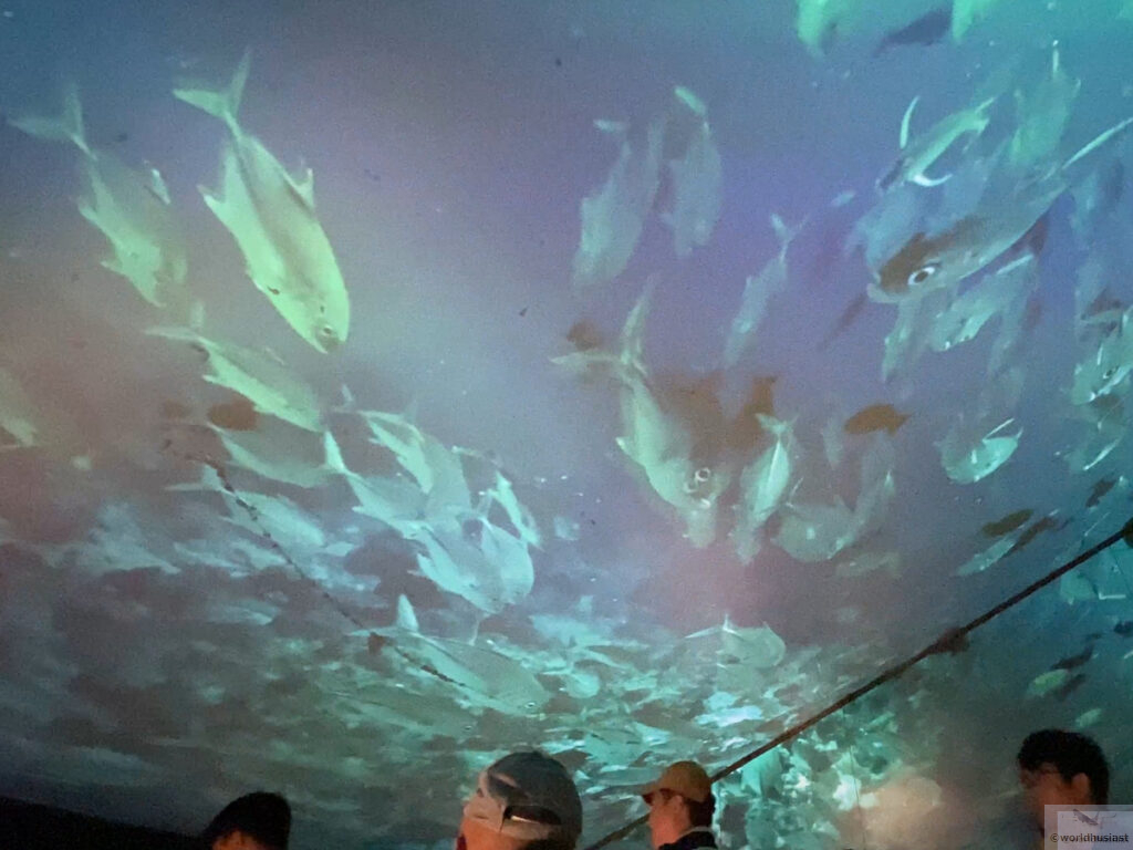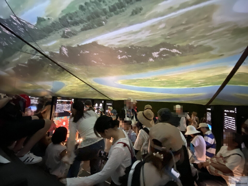 最後は天井のドームにパネルと同じ内容の動画が流れます。映像はとてもきれいです。