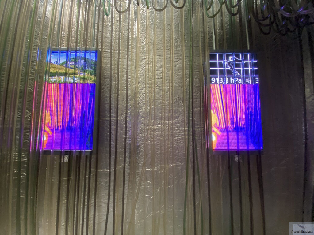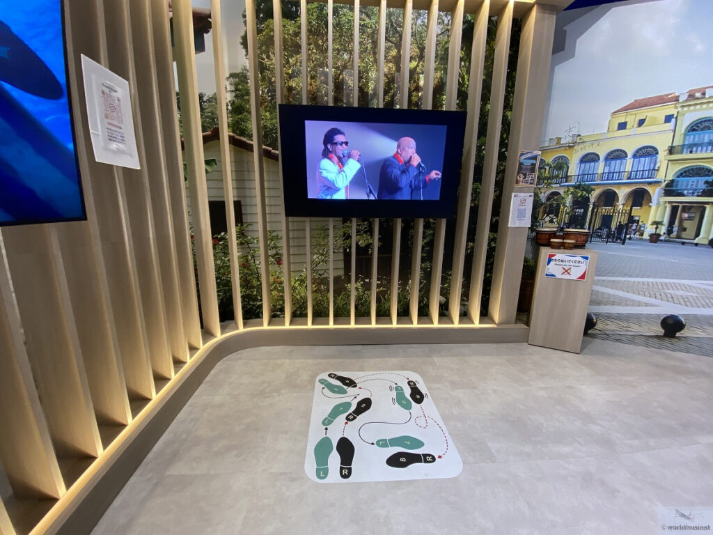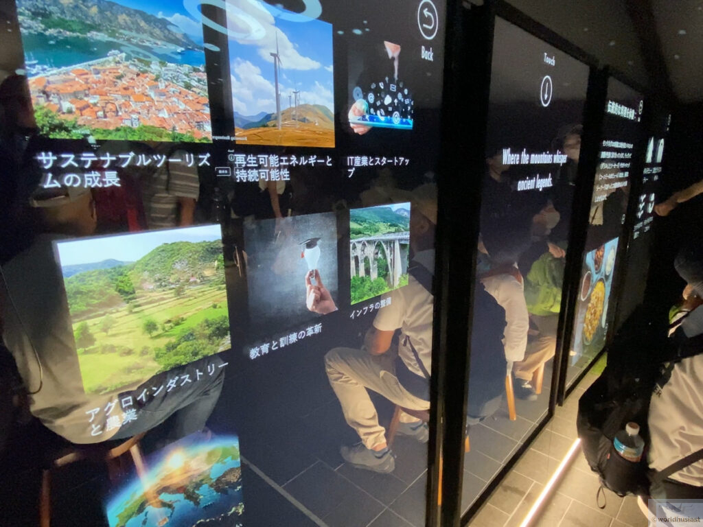 両側の壁にはタッチパネルがあり、項目を選ぶと映像が流れる仕様でした。
