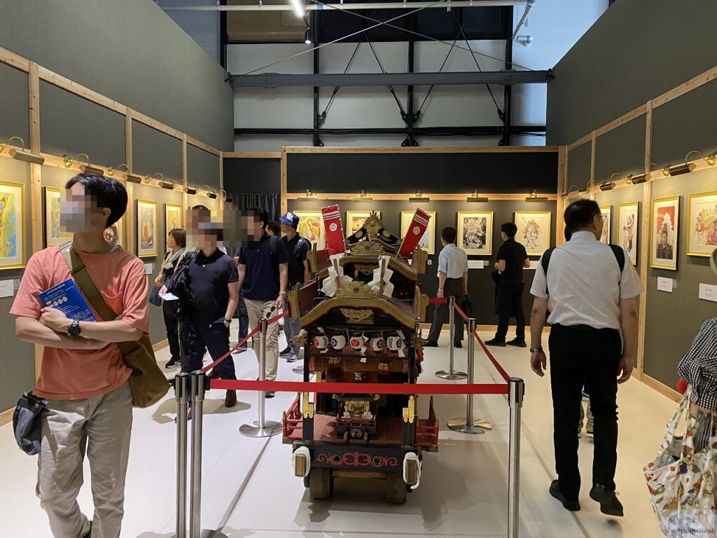 漫画展「侍の武士達」と「姫の優雅さと勇気」にあわせ、かぶとや中津祇園の山車のミニチュアなどを展示していました。