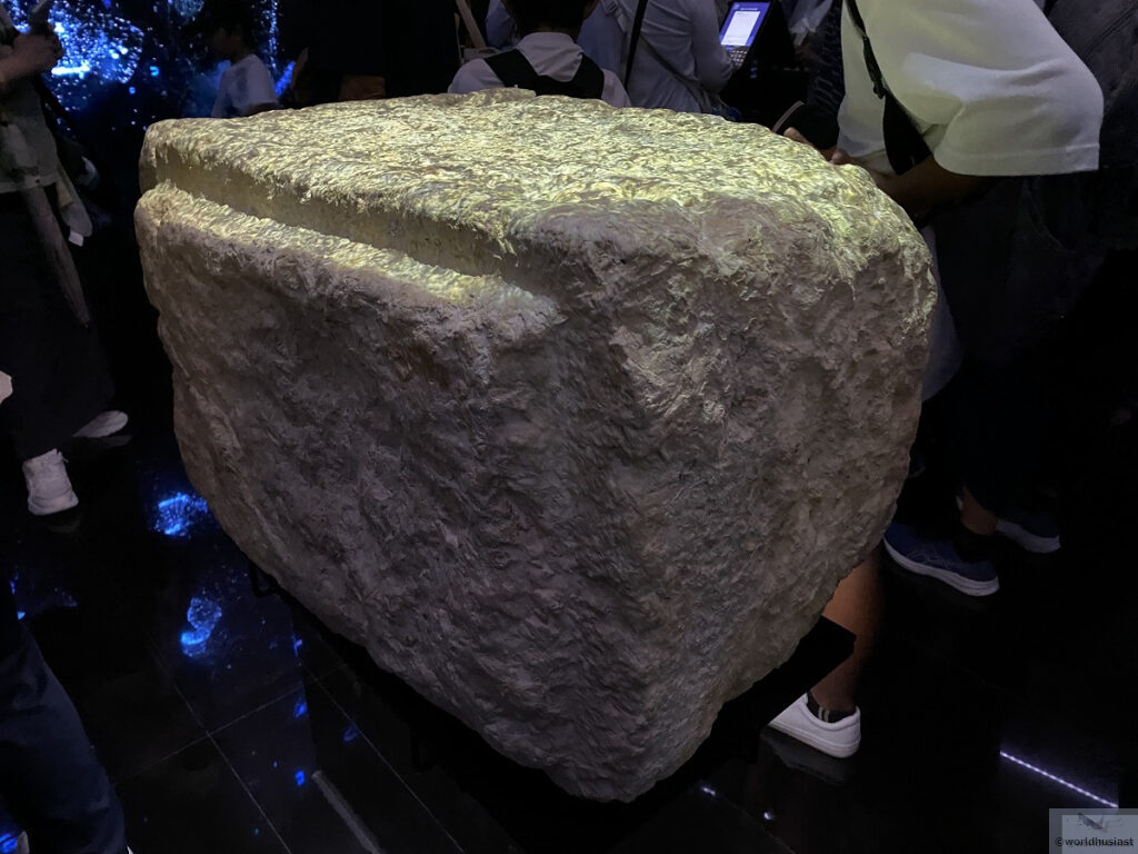鏡になっている両壁にはさまれた狭い空間の中央に、「ユダヤのハスモン朝によって、エルサレムを守るために築かれた要塞の一部」という石が置かれていました。