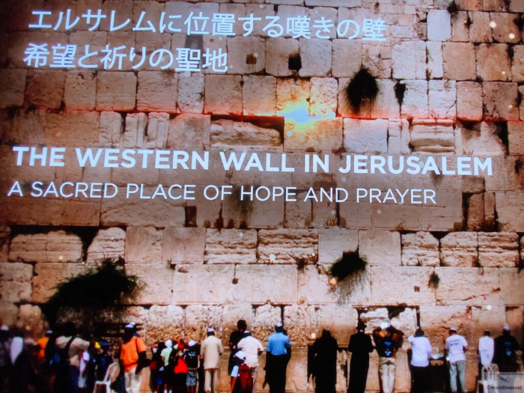 「イスラエルには願いを書いたメモを嘆きの壁に挟む伝統があります」として、タップして祈りを書いたメモを入力する小さなタブレットもありました。