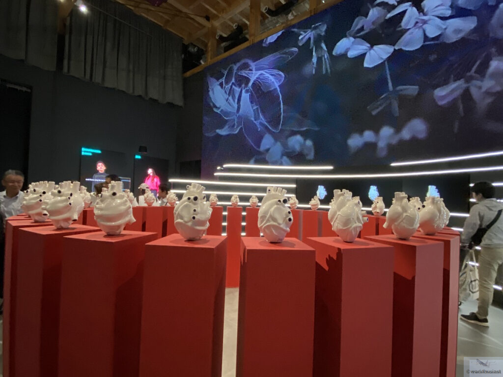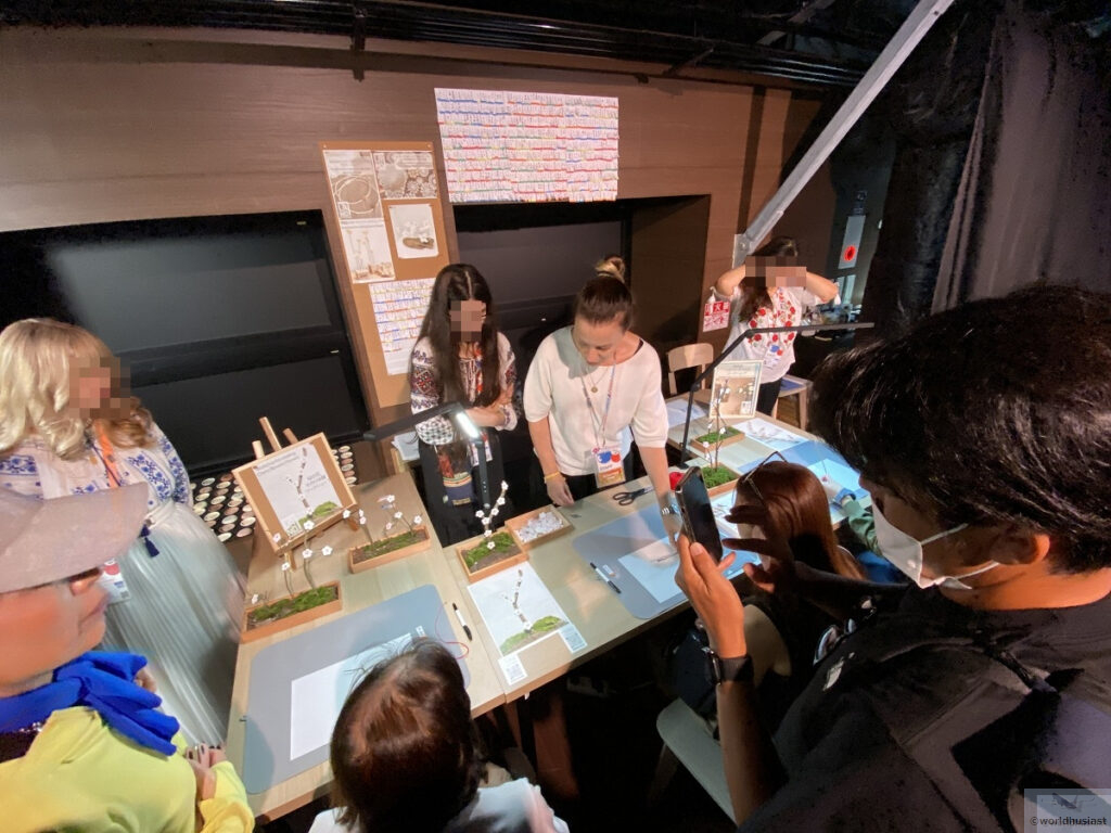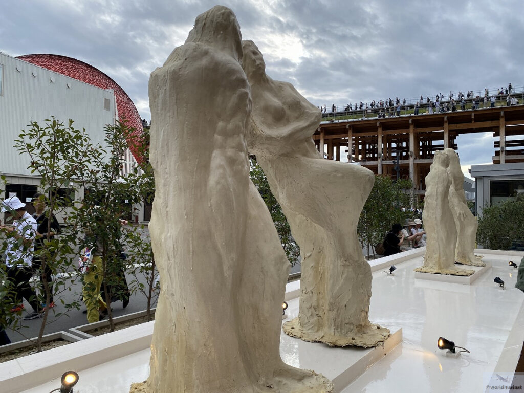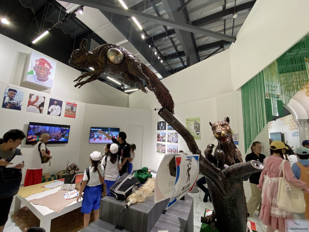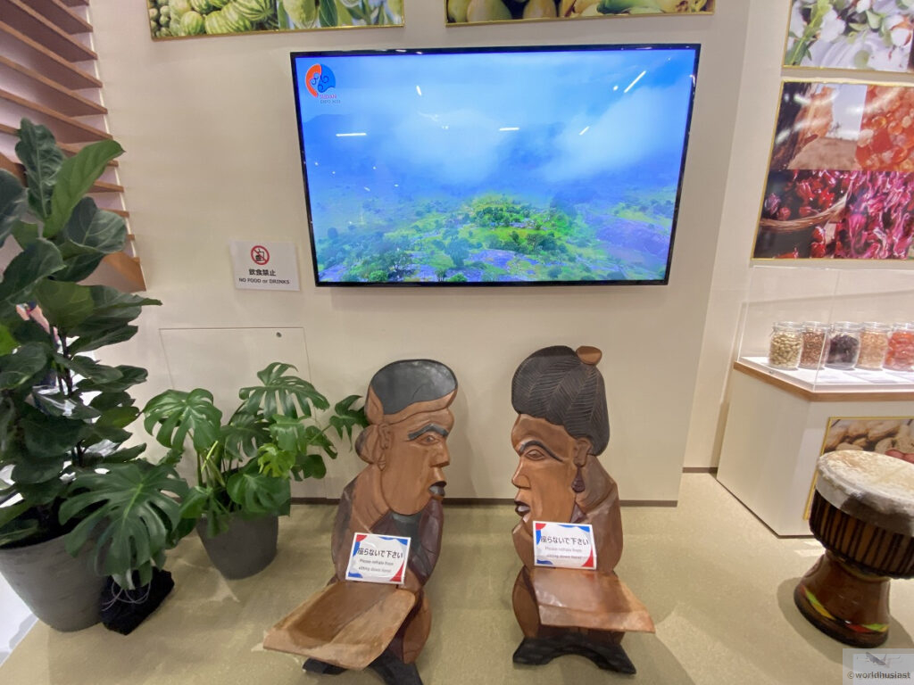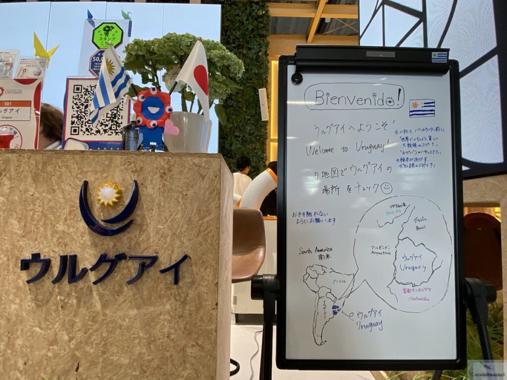 カウンターでは特に何も行われていませんでしたが、折り紙のミャクミャクがウルグアイと日本の国旗を背にしていたり、2階にもミャクミャクがいたりと、ミャクミャク率の高いパビリオンでした。