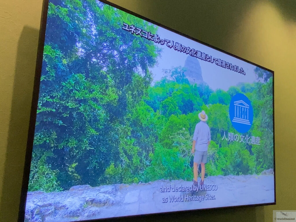 ディスプレイではグアテマラを紹介するムービーが流れていました。人口の44%がマヤの子孫である、2つの国際空港や海洋ターミナルがあり世界中からアクセスしやすいなどという情報の後、グアテマラ各地の映像が流れていました。