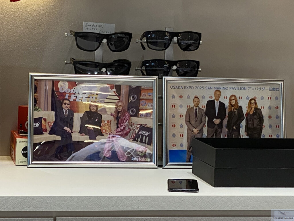 よく見るとサングラスと共にTHE ALFEEが。高見沢氏はサンマリノから騎士の勲章「聖アガタ勲章」を与えられており、現地で葡萄畑を所有しワインを生産しています。