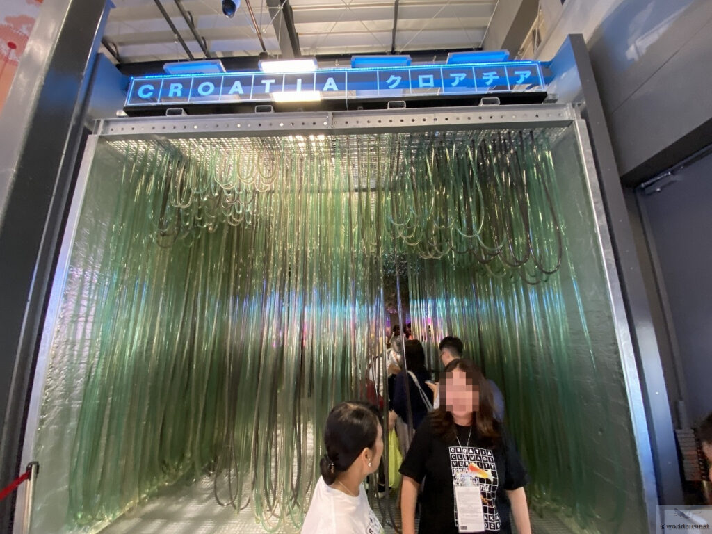 無数のチューブがぶら下がるクロアチアパビリオン。