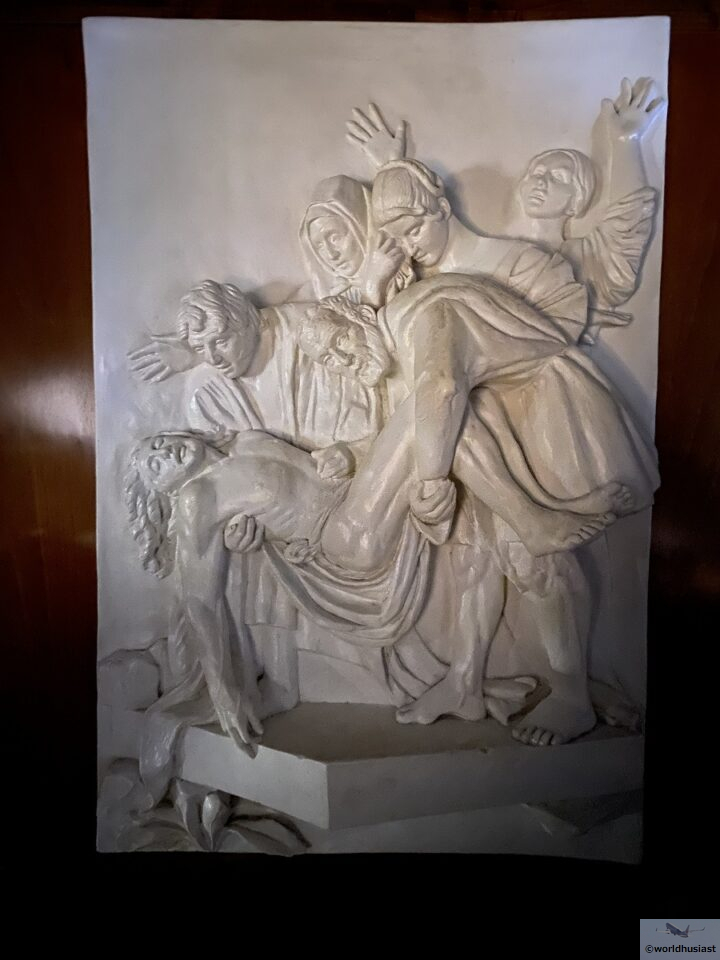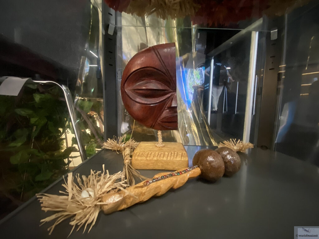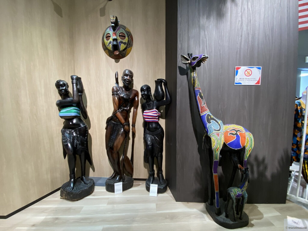 列に並ぶところには1mを超す木像が置かれていましたが、アテンダントによると9月になって届いたんだとか。何の像なのかは不明で、現地係員もおらず聞けず仕舞い。