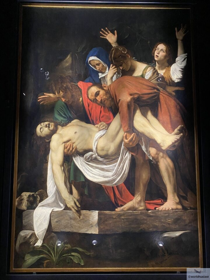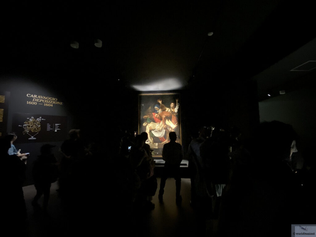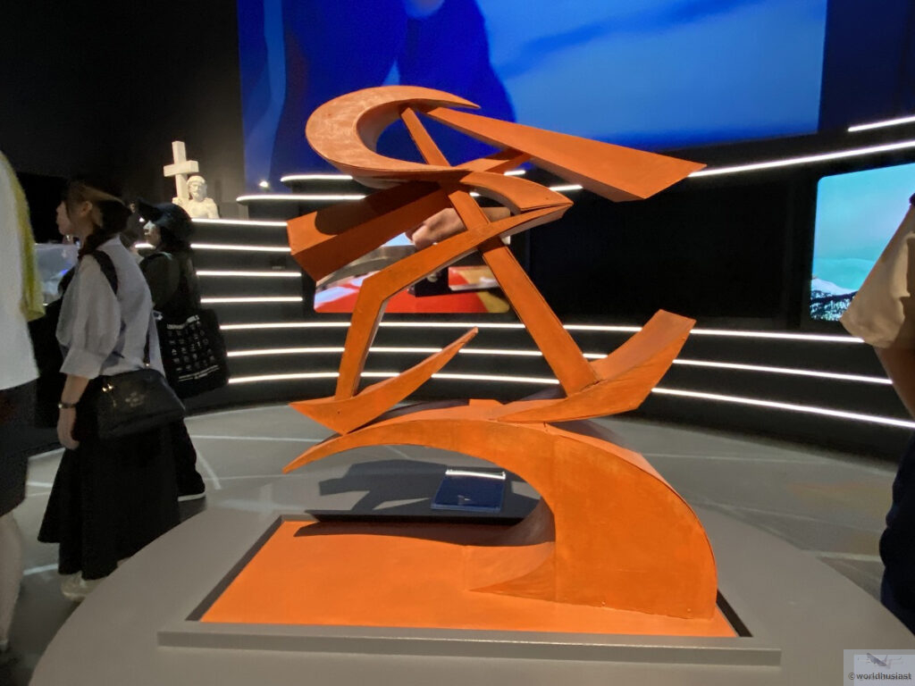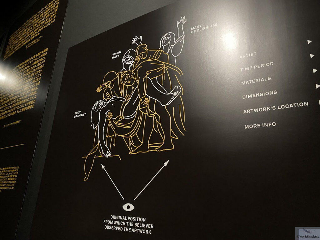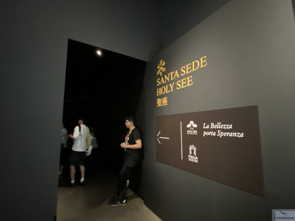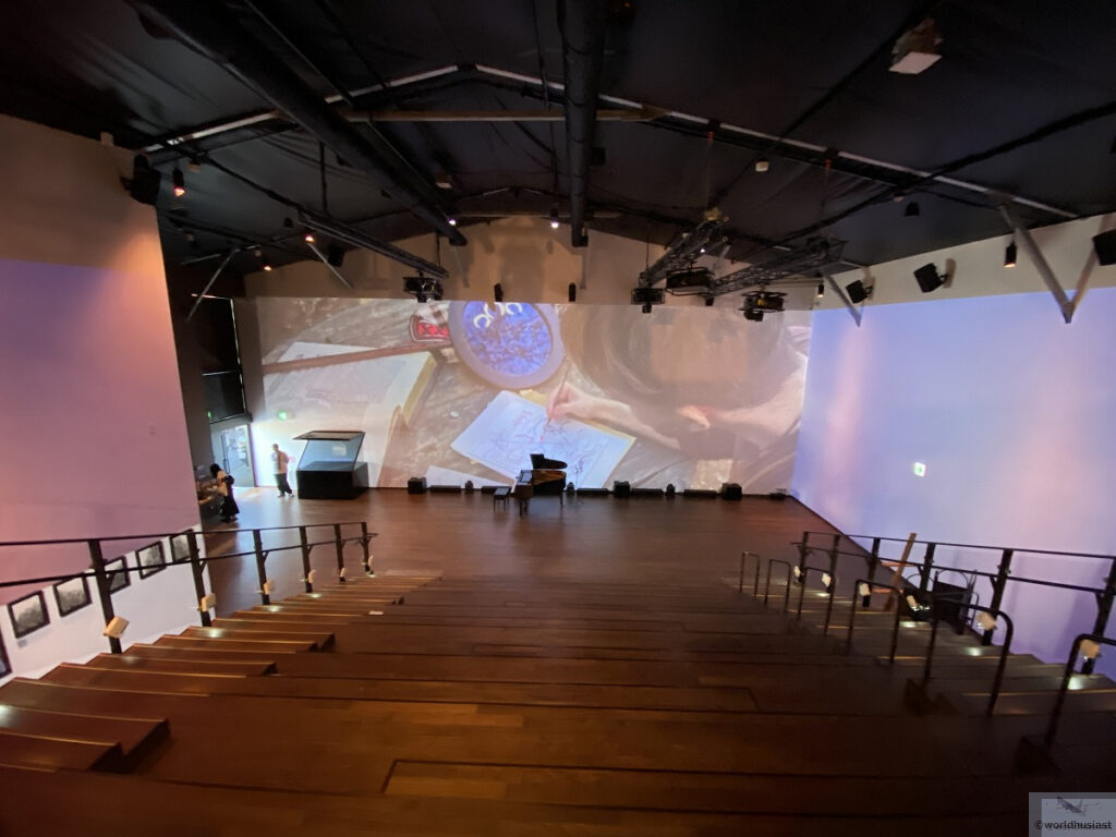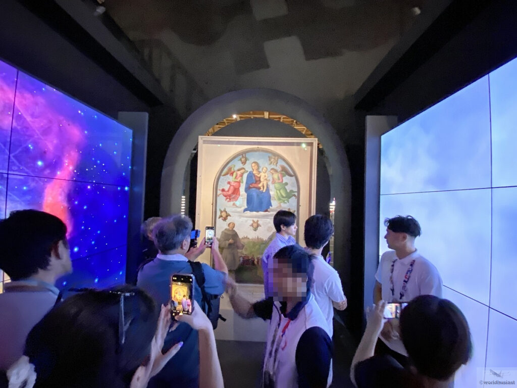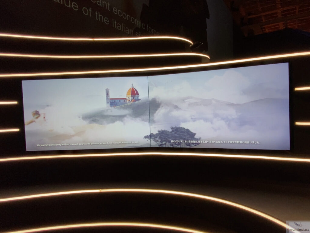 入ってすぐのホールでは、まず階段に座って聖歌系の音楽が流れる中スクリーンの映像を鑑賞。