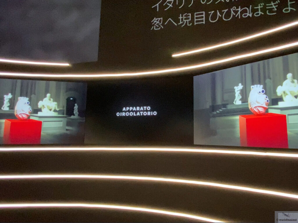最初の部屋は「チッソラの夢」。約12分、円形の180度シアターでの鑑賞です。