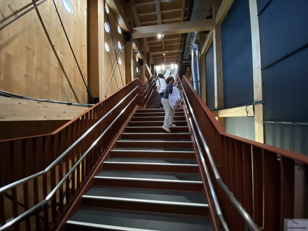 来場者は左側から入ってきます。中央部分が鑑賞席で、左右にあるのが階段です。