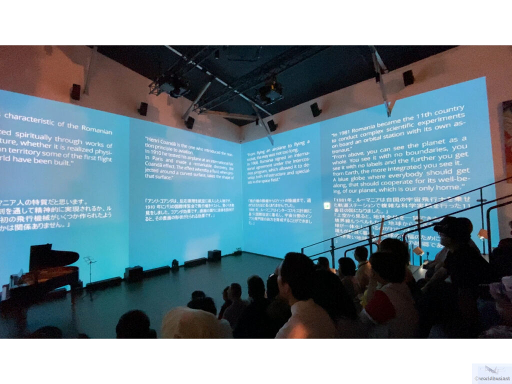 映像ではククテニ文化の人型土偶、ゲト・ダキア文明の出土品、コンスタンティン・ブランクーシ、オーレル・ヴライク、宇宙飛行士、科学者、医者、フェンシング選手などについて触れられていました。