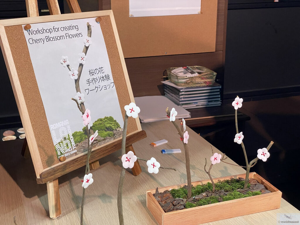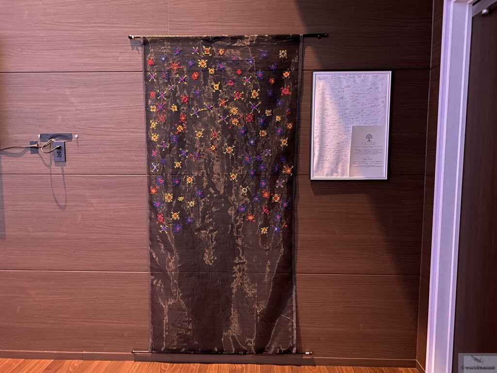 よく見ると、この後の生歌で披露されるハンガリー民謡「Tavaszi Szél Vizet Áraszt(春の風が水を呼び覚ます)」の歌詞がハンガリー語(マジャル語)、英語、中国語、日本語などでアートの中に書きこまれていました。