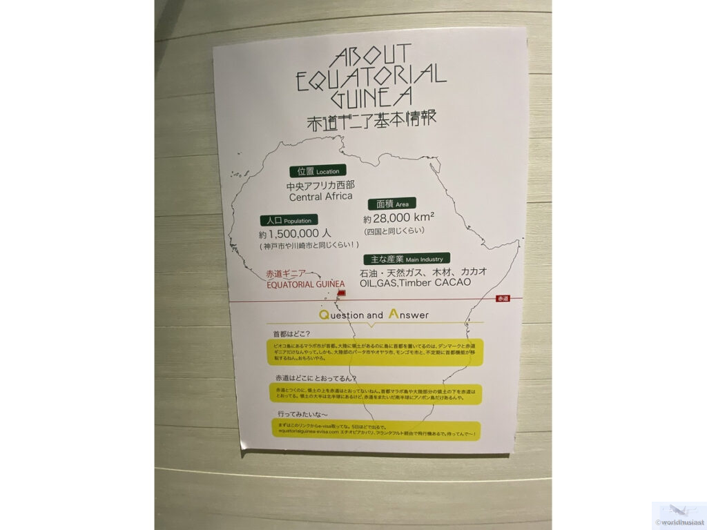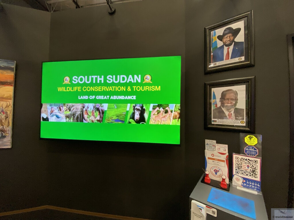壁にはアンゴラの紹介パネルがありました。かつてはビザが必要(本人が大使館に出向いて指紋をとるもの)でしたが、2023年より日本人はビザなしで短期観光可能になりました。感染症対策とか治安とかお金とか依然壁はありますが・・・。