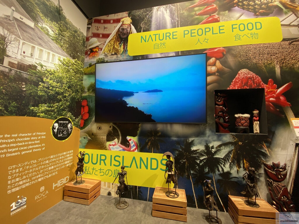 アイランドエリアは導入部のような感じで、デスクにコーヒー豆や樹液によるお香、マルミミゾウなどが掲載されたガボンを紹介する冊子が置かれていました。