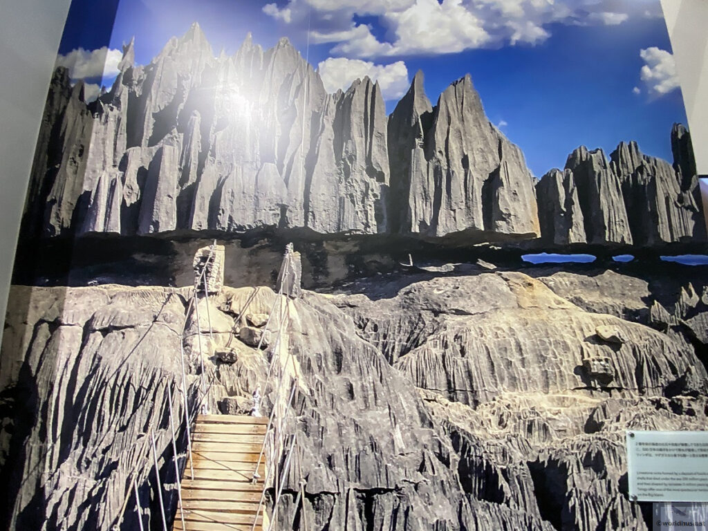 展示室入口は森のイメージのように思います。その両側には小さな展示ケースがありますが、誰も見ていないような雰囲気。見逃した方のためにここでは全部掲載します。ただし内容は相変わらず不明です。