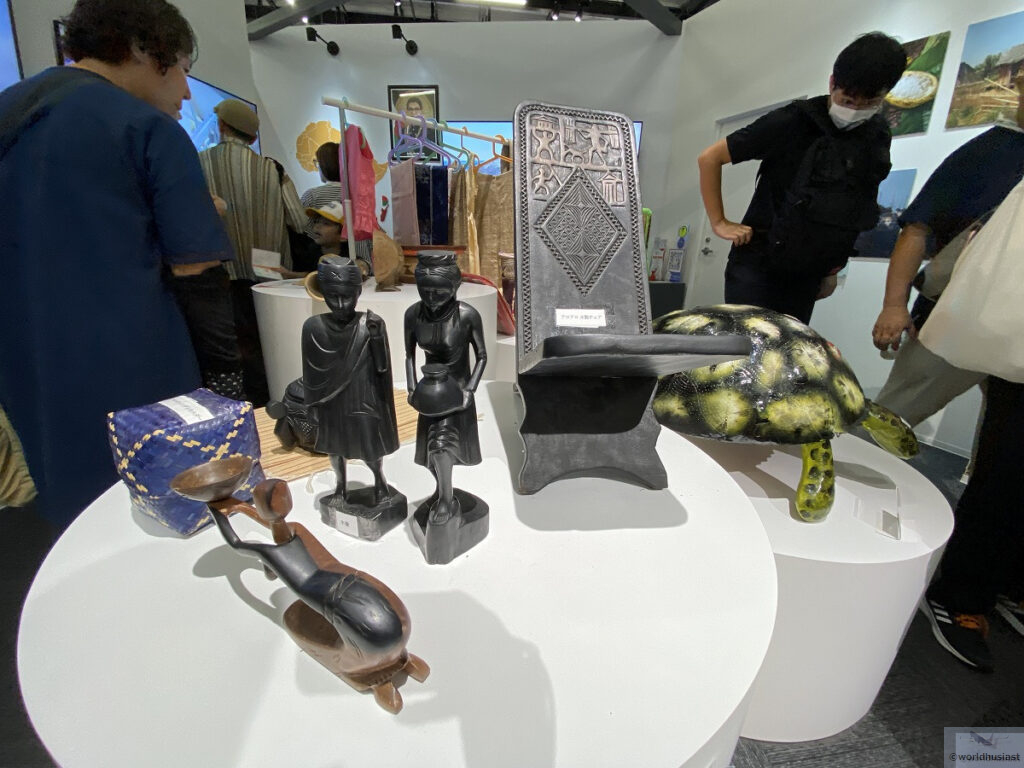 「テキスタイルの森」をイメージした展示スペースでは、伝統工芸品やアート作品、食器、雑貨などが並んでいました。