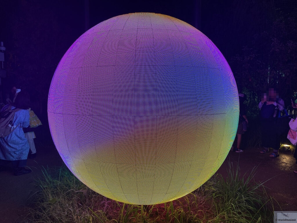 最後は隣にある球体へ。これまでのアート作品に対して感じた思いが色となって球体に映し出され、最終的に一つのテーマカラーとなります。