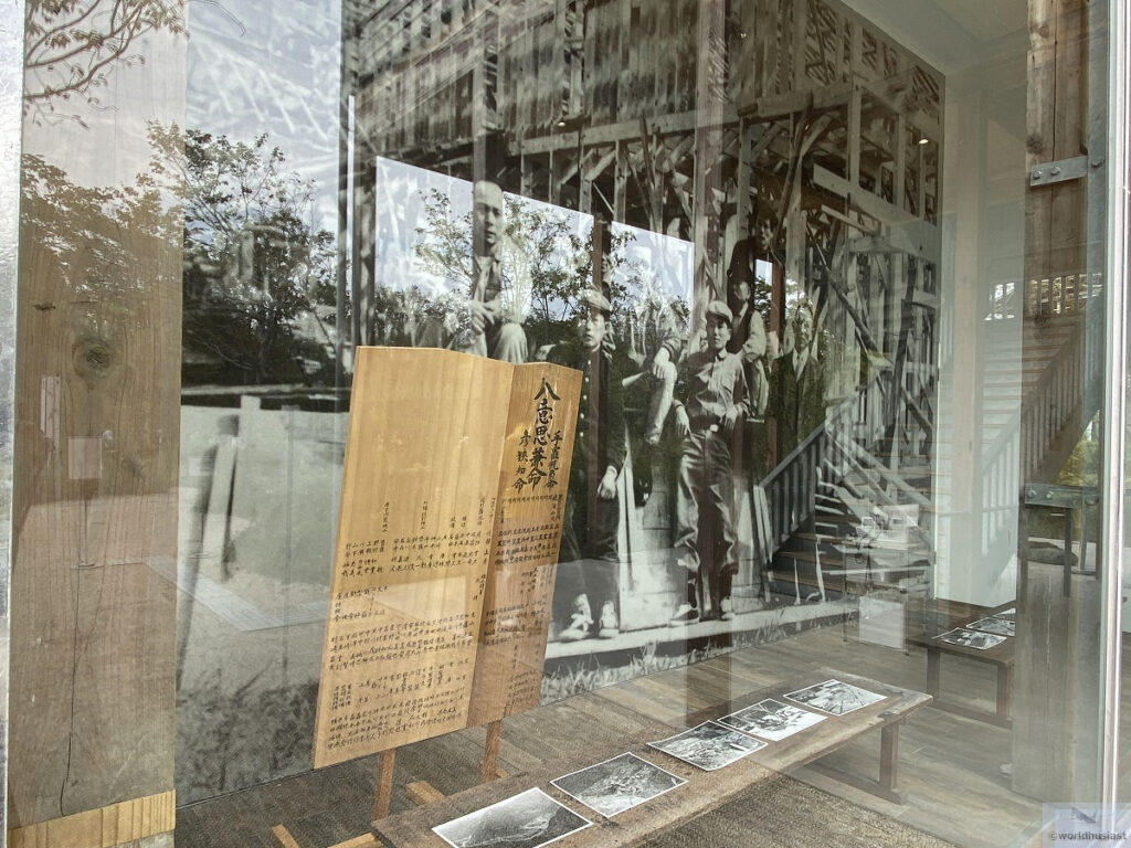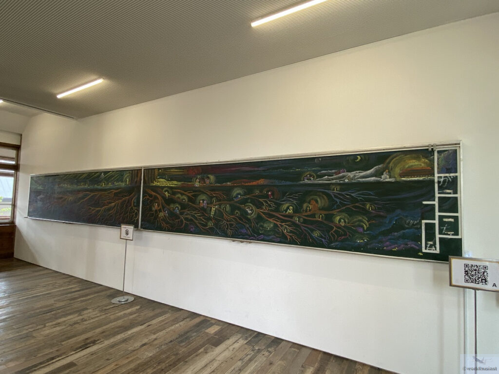 廃校となった奈良県十津川村立折立(おりたち)中学校と京都府福知山市立細見小学校中出分校の校舎を一部移築したもので、外観はとても趣があります。校舎にとっても、こんなにたくさんの人の目に触れることはずいぶん久々だったことでしょう。