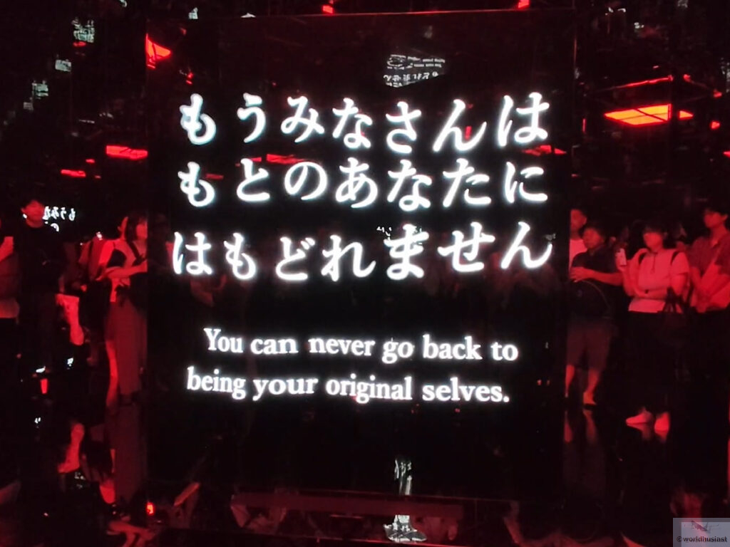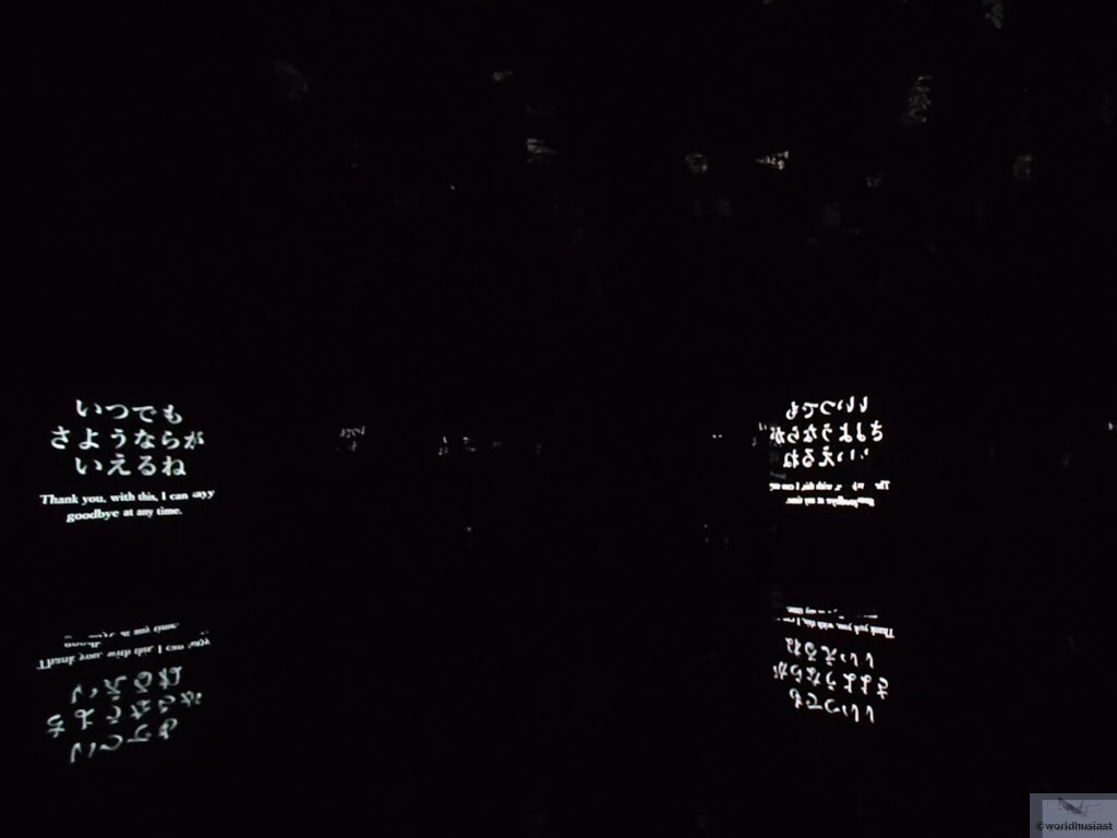 最後の部屋に入ると、テーブルにプロジェクション・マッピングでメッセ―ジが映し出されます。