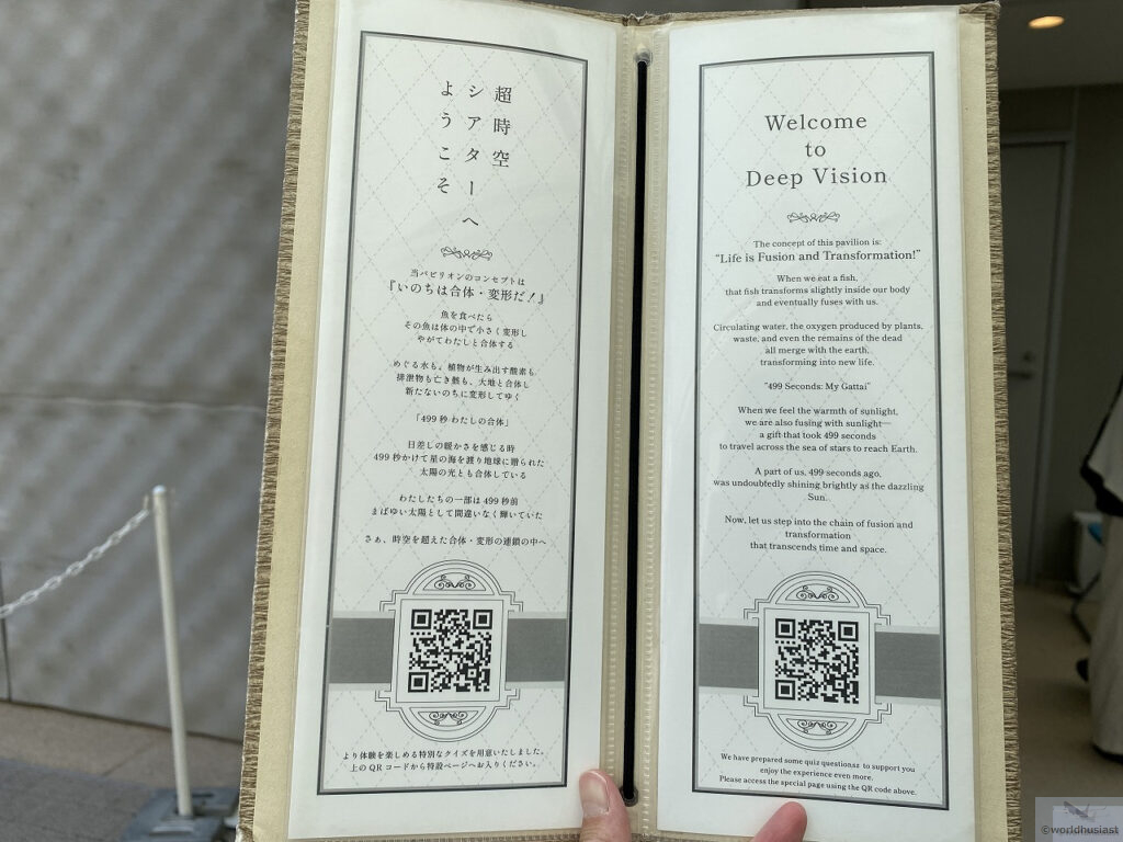 ただ、他の回に参加した方の話では案の定当たり外れが大きいようで、対話のどちらかはある程度慣れている人でないとパビリオンとしての成功は難しいのではと思いました。また、全編日本語なのですが、外国の方にはどうなのでしょう。万博でやるべきことなのかは疑問です。