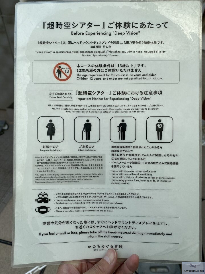 まず骨伝導デバイスを受け取ります。パビリオンではずっとオーディオガイドの音を聞くことになり、基本的にパビリオン内には声は流れていません。