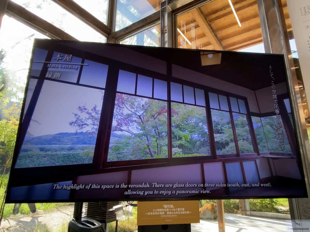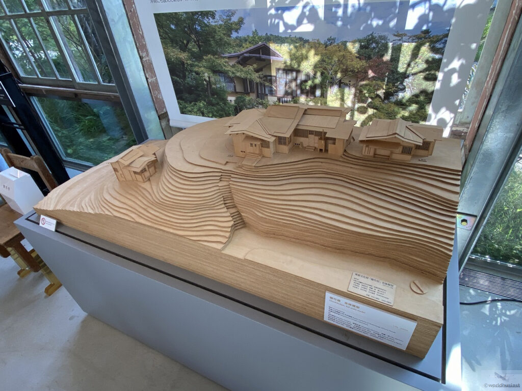 早口で10回連続言うのが難しい聴竹居(ちょうちくきょ)は、竹中工務店に在籍していたことがある藤井厚二氏の自邸。予約制訪問となる内部の様子がモニターに映し出されていました。個人的には特に縁側が素晴らしく、また、閑室の玄関扉は角二面で、アルゼンチンのウマワカ伝統様式を思い出しました。