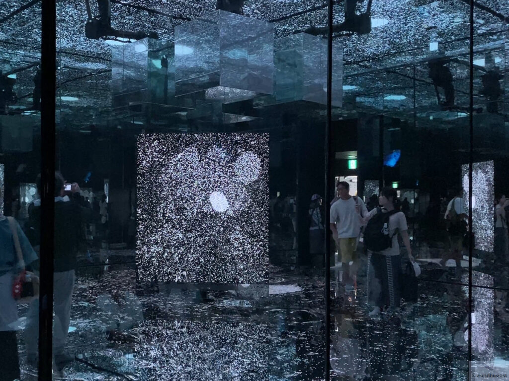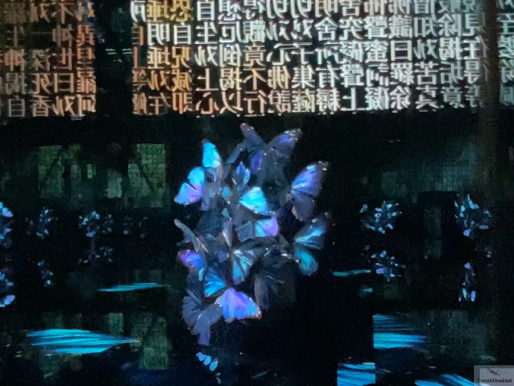 約400本のサンキャッチャーに約15,000個ものクリスタルが取り付けられていますが、人がみんな違うようにすべて異なるクリスタルの付き方をしているとのこと。ここではエコーブから水が滴るような音が聞こえてくる仕掛け。