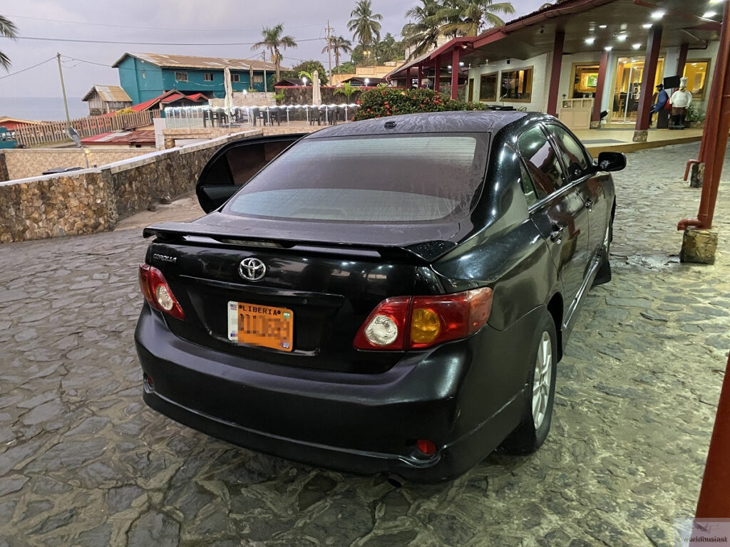 警察官の案内で安全だというシェアタクシーへ。全然乗り場が違ったようです。恐らくさっきのシェアタクシーは同じ方向だが国境まではいかないもので、こちらははじめから国境に行く予定の車なのかなと想像。料金は1,200リベリアドルでした。今度は倍額請求もなさそうです。警察官にはチップは渡せないため、感謝を伝えて別れました。車内は助手席に2人、後部座席に4人、さらにトランクにも1人というかなりの過密状態でした。