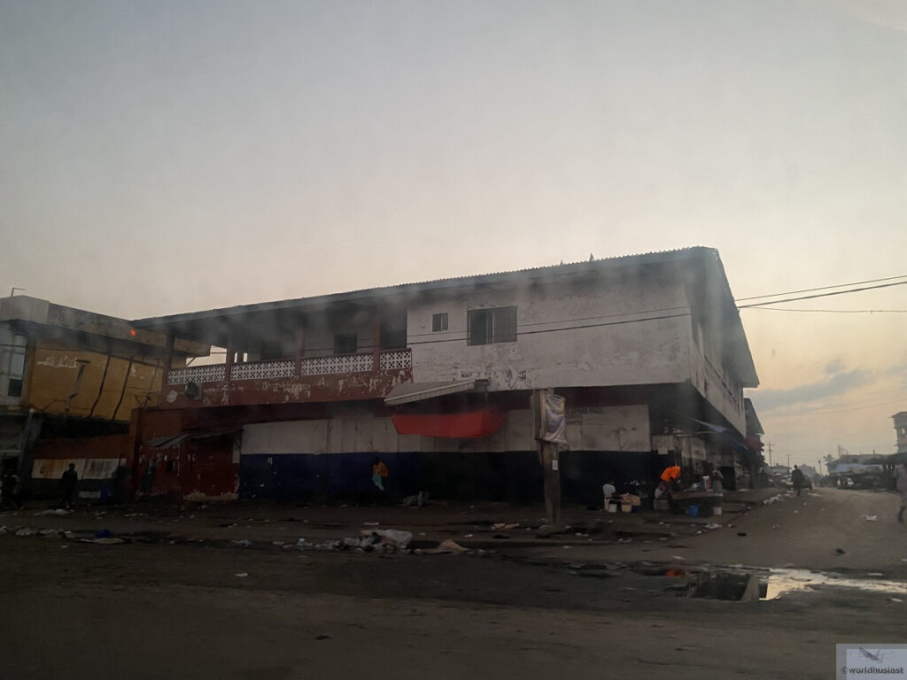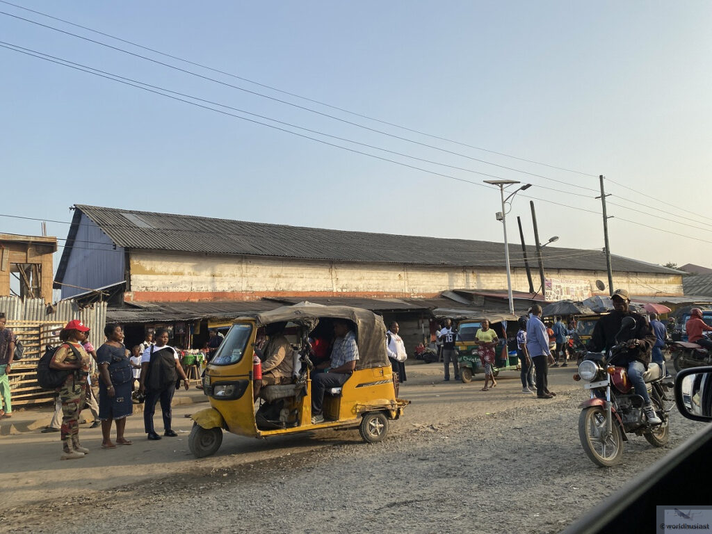 そのとき偶然警察官が来て、料金をガタガタ言ってくる男には気をつけるよう忠告してくれました。国境へ向かう予定だと伝えると、なんと乗り場まで案内してくれることになりました。トゥクトゥクで移動したのですが、その料金50リベリアドルは警察官が支払ってくれました。Duala地区をトゥクトゥクでちょっと走ると、ローカル強めのマーケットと混沌さがあり、事前情報どおりあまり安全ではなさそうだと感じました。